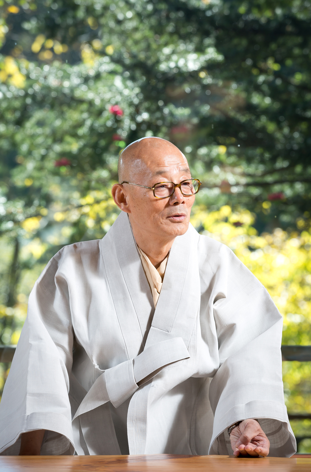 [평창=eoimage] (시사저널) 임준선 기자 = 21일 강원도 평창 월정사 에서 명진스님이 시사저널과 인터뷰를 하고 있다.