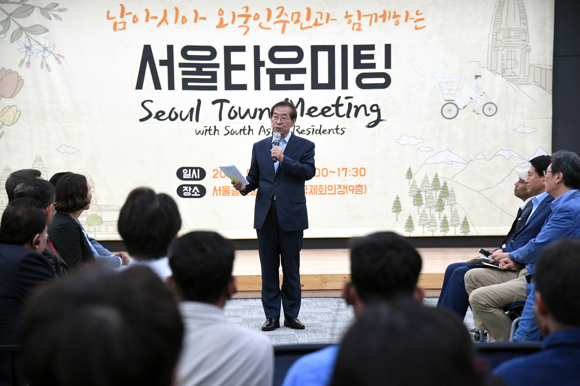 박원순 서울시장, 남아시아 거주민들과의 만남 박원순 서울시장이 16일 남아시아 거주민들과 서울타운미팅을 하고 있다. 서울시 제공