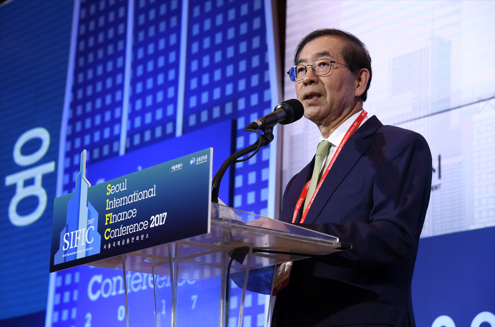 박원순 서울시장이 21일 오전 서울 여의도 콘래드호텔에서 열린 서울국제금융콘퍼런스에 참석하고 있다. 서울시 제공