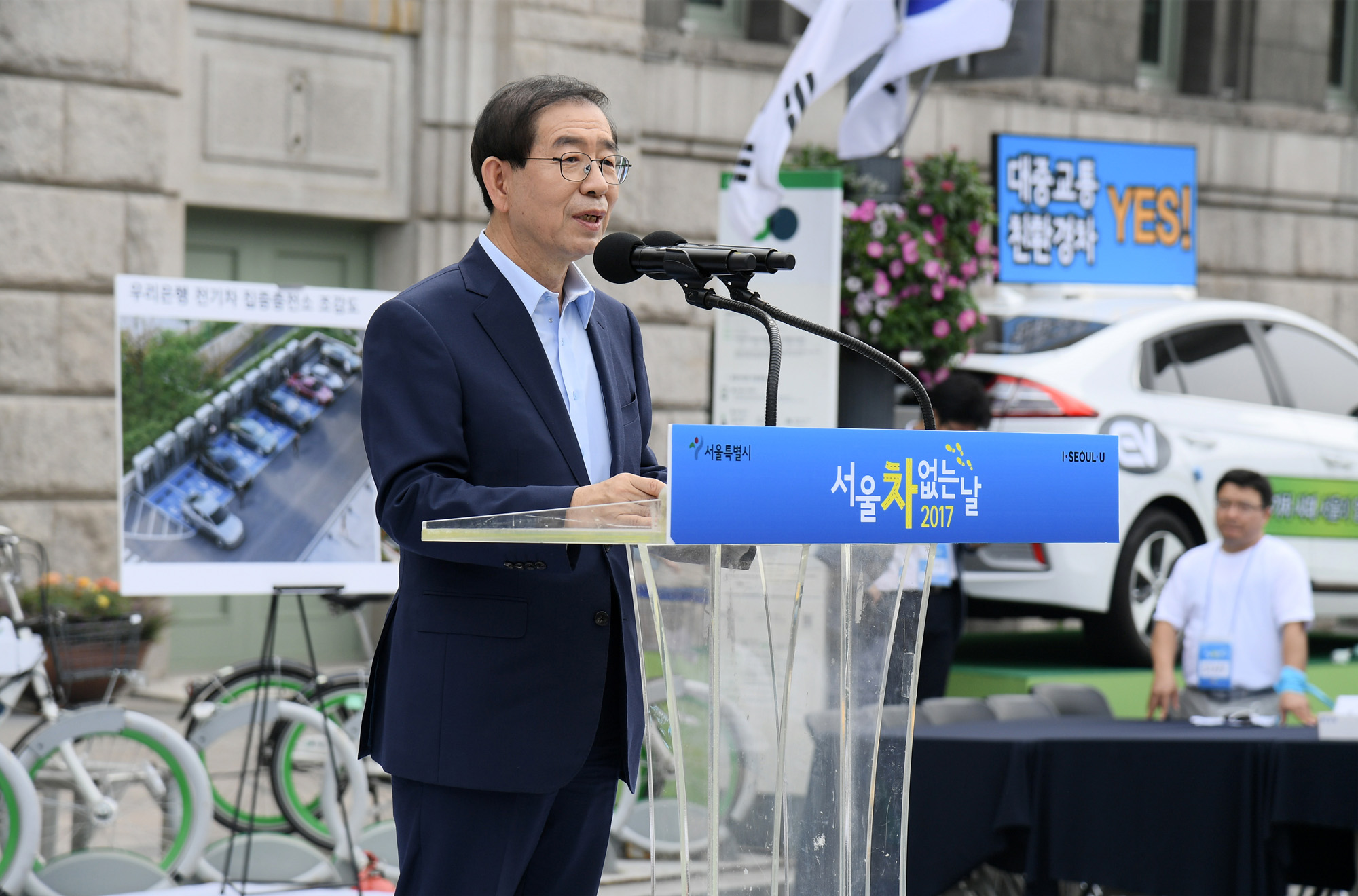 박원순 서울시장이 24일 오전 서울 세종대로에서 열린 ‘서울 차 없는 날 2017’ 기념식에서 인사말을 하고 있다. 서울시 제공
