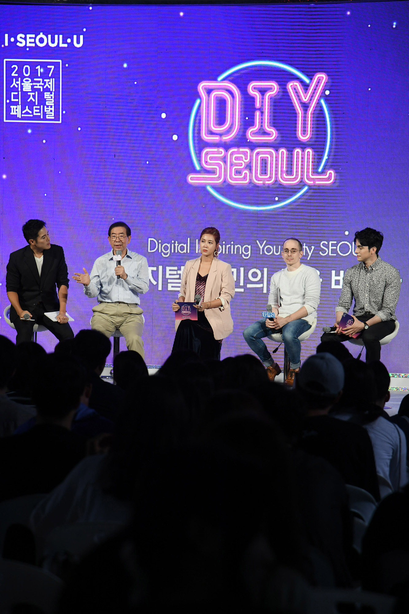박원순 서울시장이 24일 오후 신촌 연세로에서 열리는 '2017 서울국제디지털페스티벌'의 행사 가운데 하나인 '글로벌 청년 디지털 회담'에 참석하고 있다. 서울시 제공