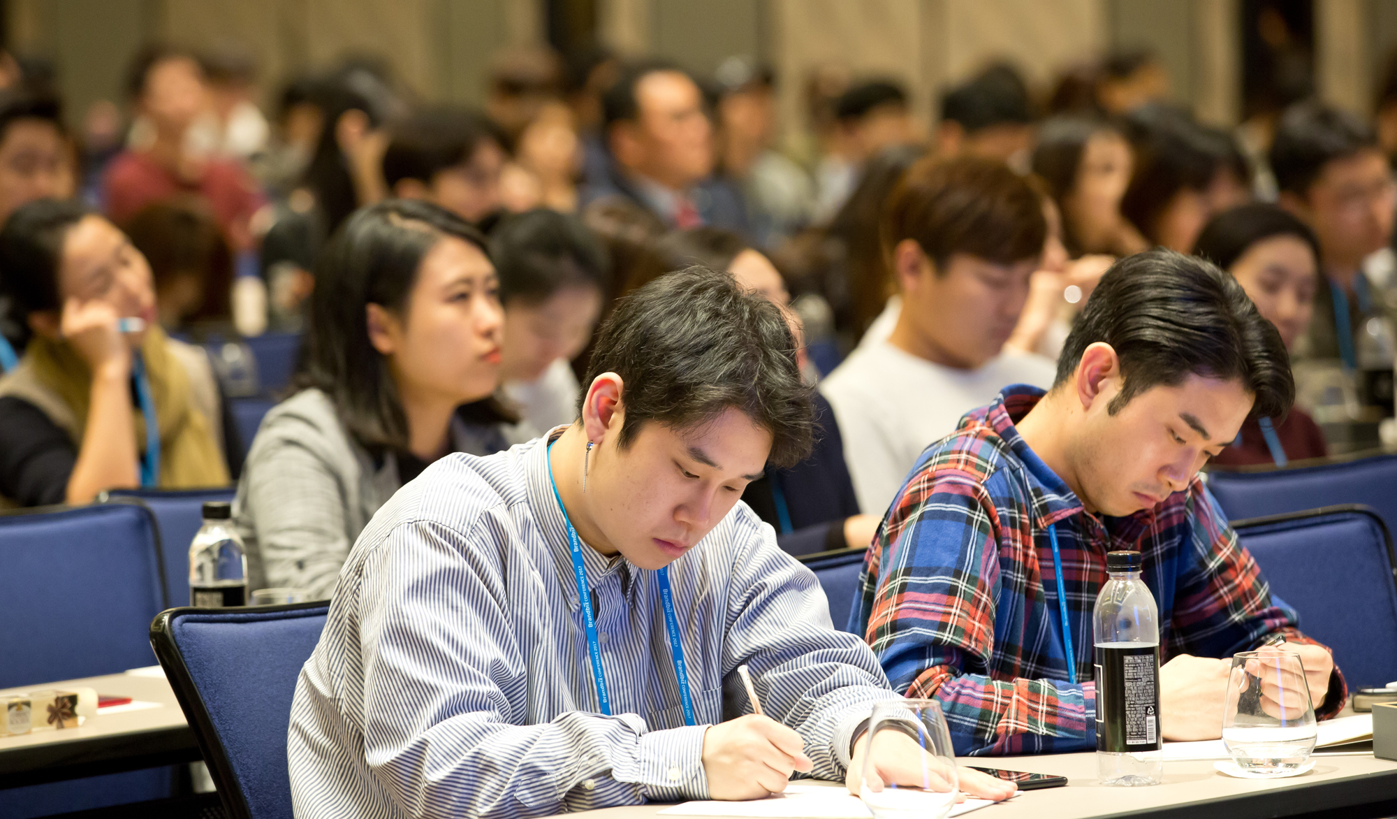 비즈한국 주체 Brandbiz conference 2017 에서 강재덕 더라임라이트뮤직컨설팅 대표의 강연을 참가자들이 경청하고 있다.