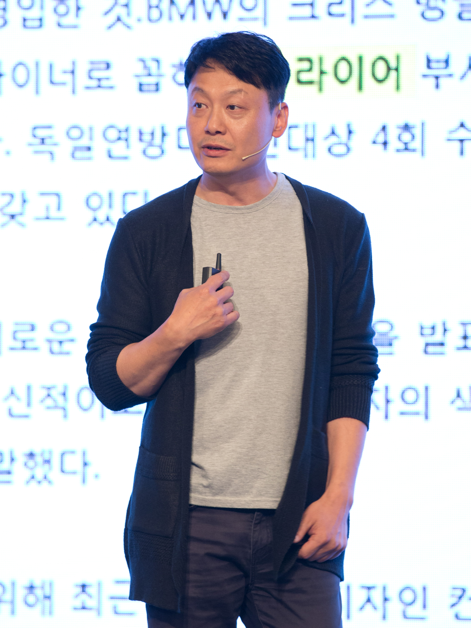 비즈한국 주체 'Brandbiz conference 2017'에서 김봉찬 대신증권 브랜드 전략실장이 강연을 하고 있다.