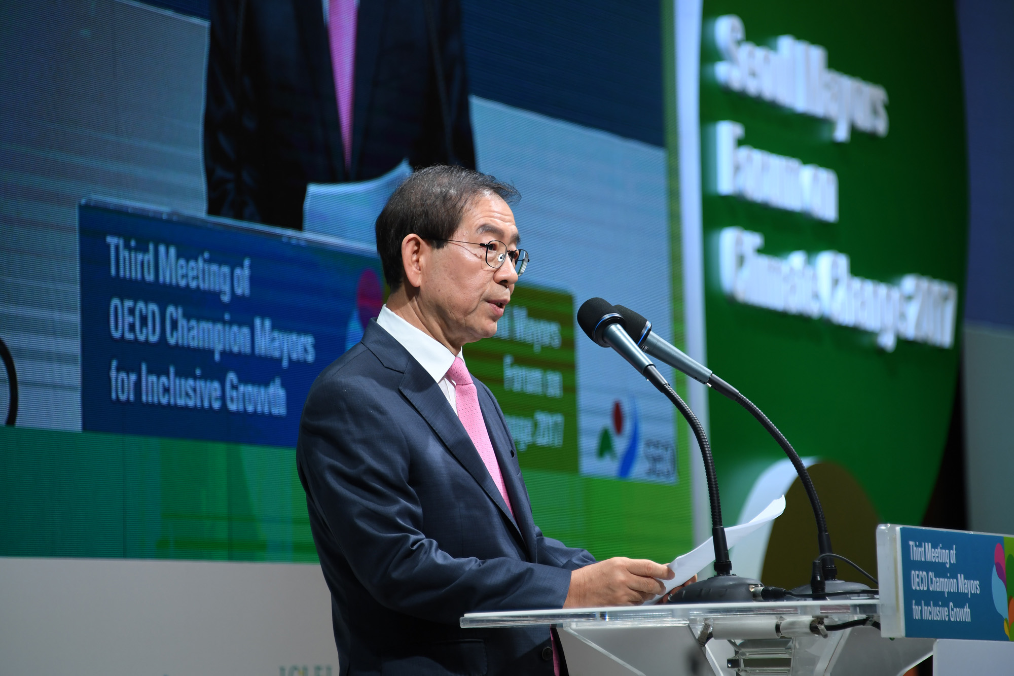 박원순 서울시장이 19일 오전 서울 여의도 콘래드호텔에서 열린 'OECD 국제회의 개회식 및 챔피언 시장 패널토론'에 참석하고 있다. 서울시 제공