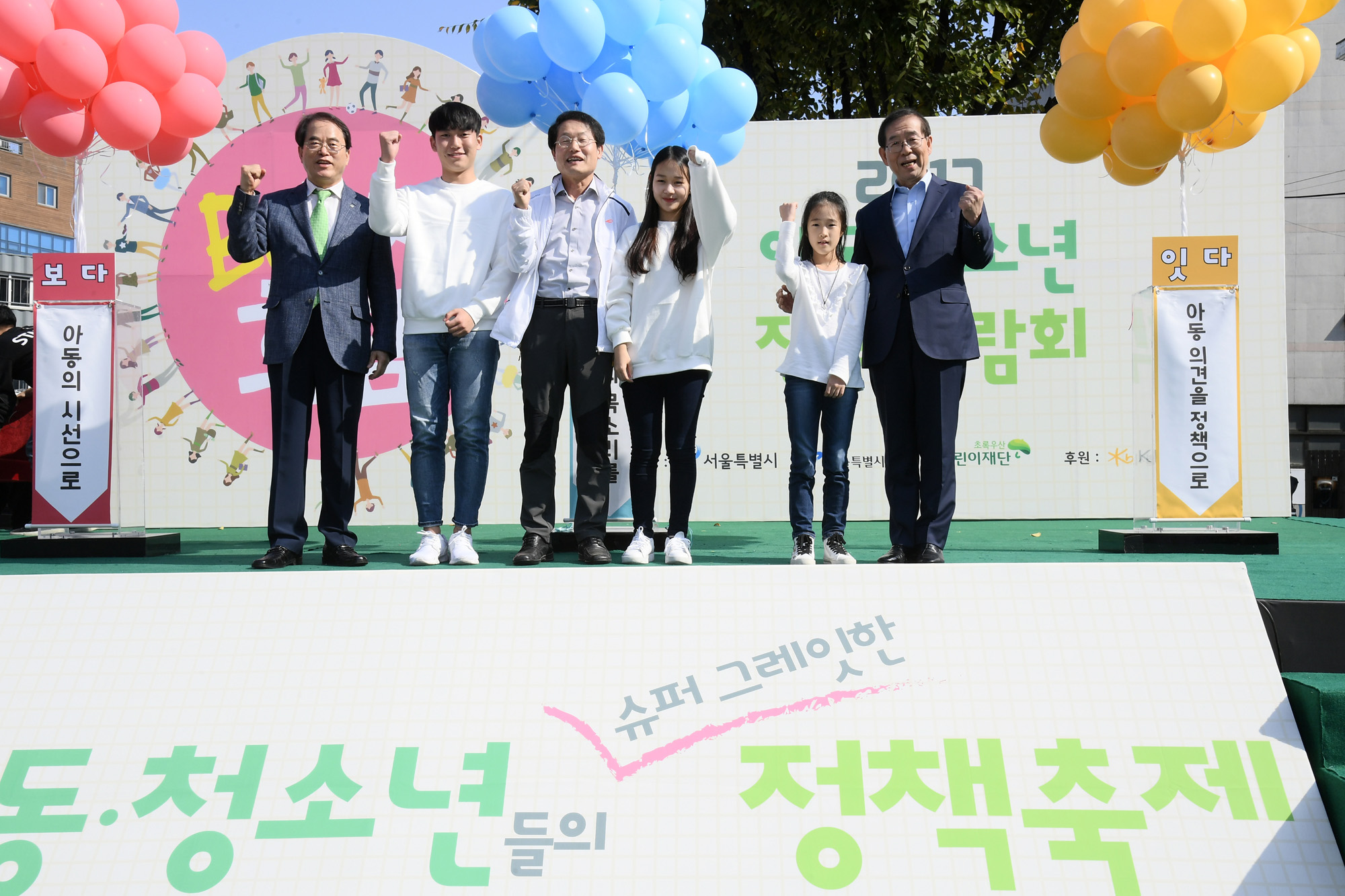 박원순 서울시장과 조희연 서울시교육감이 21일 오후 서울 마포구 홍대 앞 걷고싶은 거리에서 열린 '2017 아동.청소년 정책박람회(Be정상회담)'에 참석해 정책 현실화 방안 강구 대화를 나누고 있다. 서울시 제공