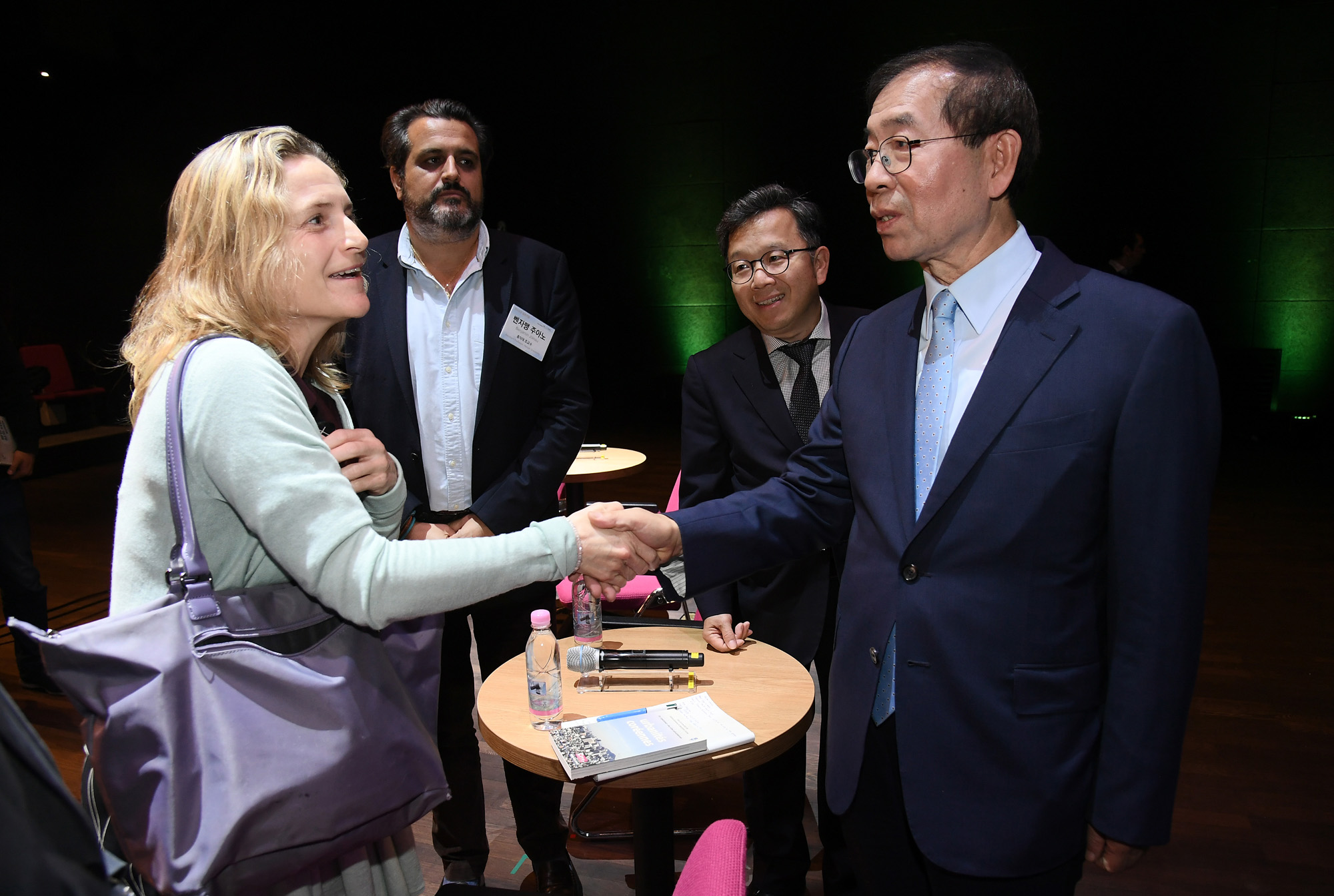 박원순 서울시장이 지난 1일 서울 삼청로 국립현대미술관에서 열린 서울도시건축비엔날레 '시장에게 보내는 편지전'에 참석해 발언하고 있다. 서울시 제공