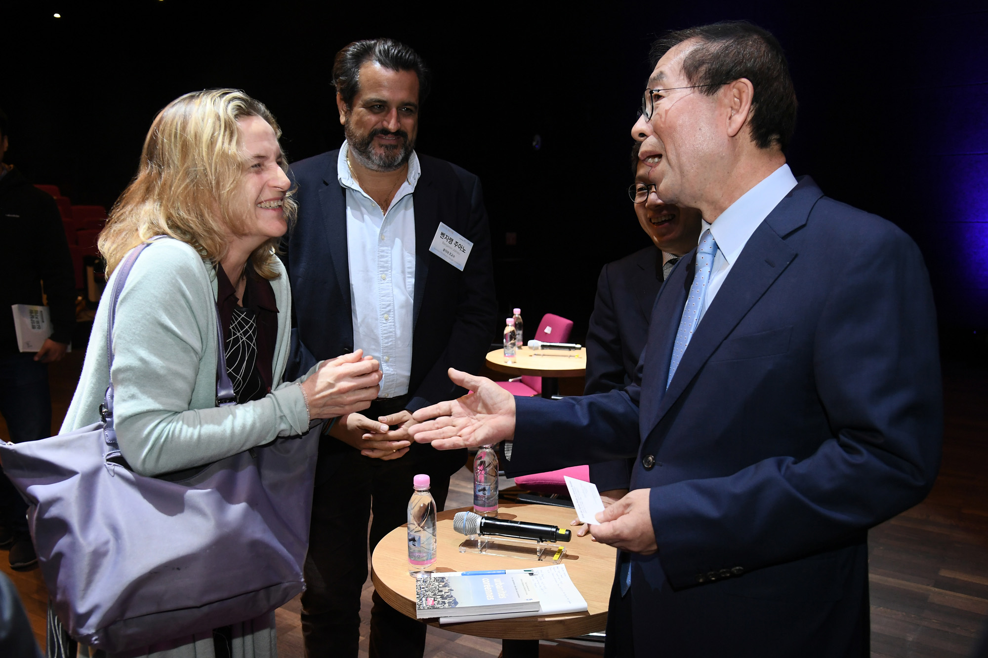 박원순 서울시장이 지난 1일 서울 삼청로 국립현대미술관에서 열린 서울도시건축비엔날레 '시장에게 보내는 편지전'에 참석해 발언하고 있다. 서울시 제공