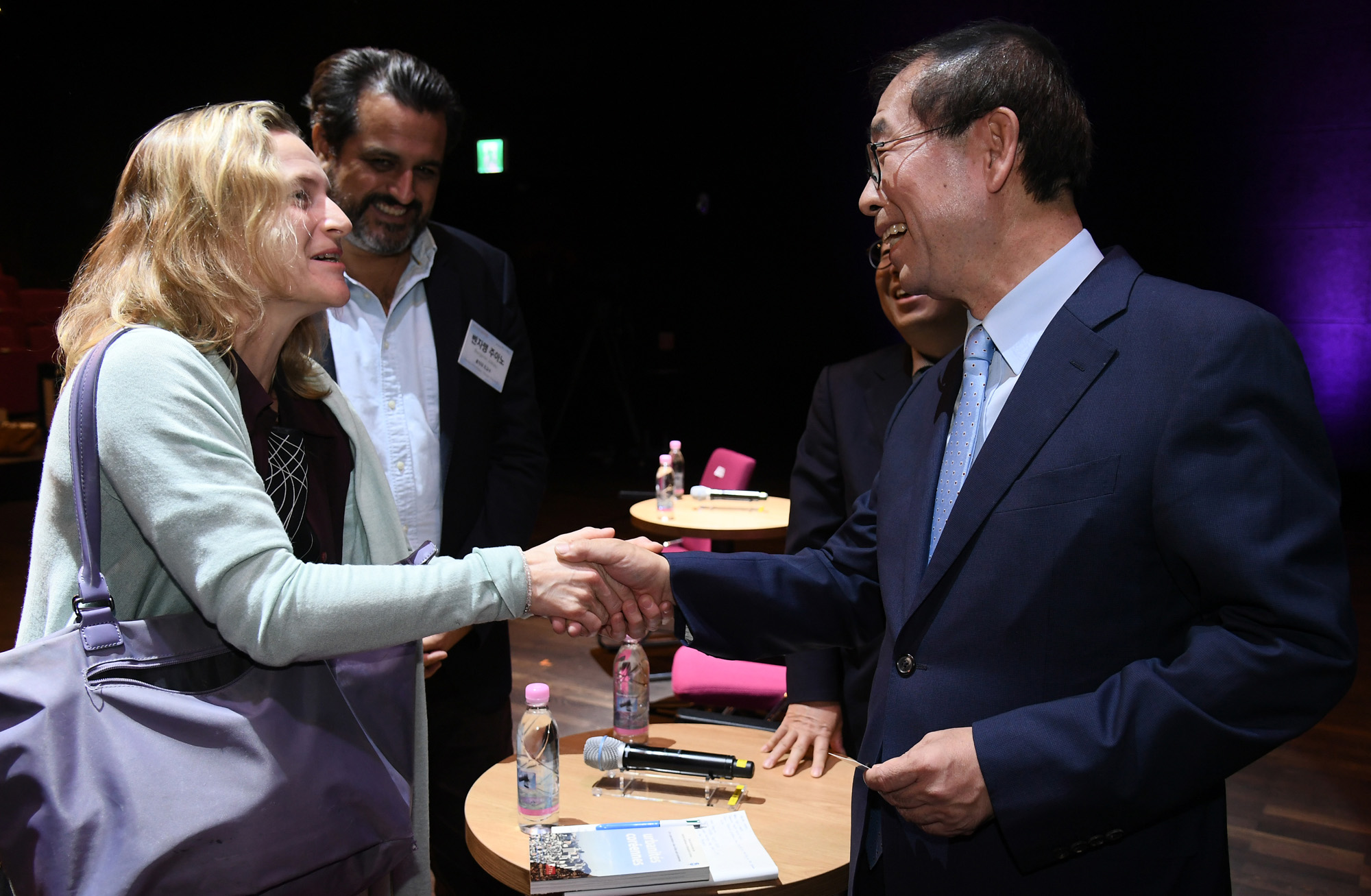 박원순 서울시장이 지난 1일 서울 삼청로 국립현대미술관에서 열린 서울도시건축비엔날레 '시장에게 보내는 편지전'에 참석해 발언하고 있다. 서울시 제공