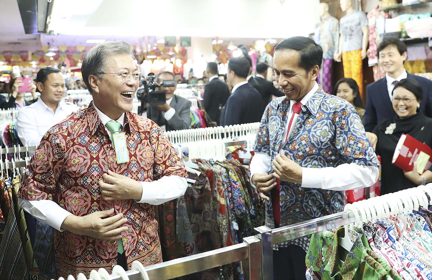 인도네시아를 국빈방문 중인 문재인 대통령이 9일 오후(현지시간) 조코 위도도 인도네시아 대통령과 현지 쇼핑몰을 '깜짝 방문'했다.