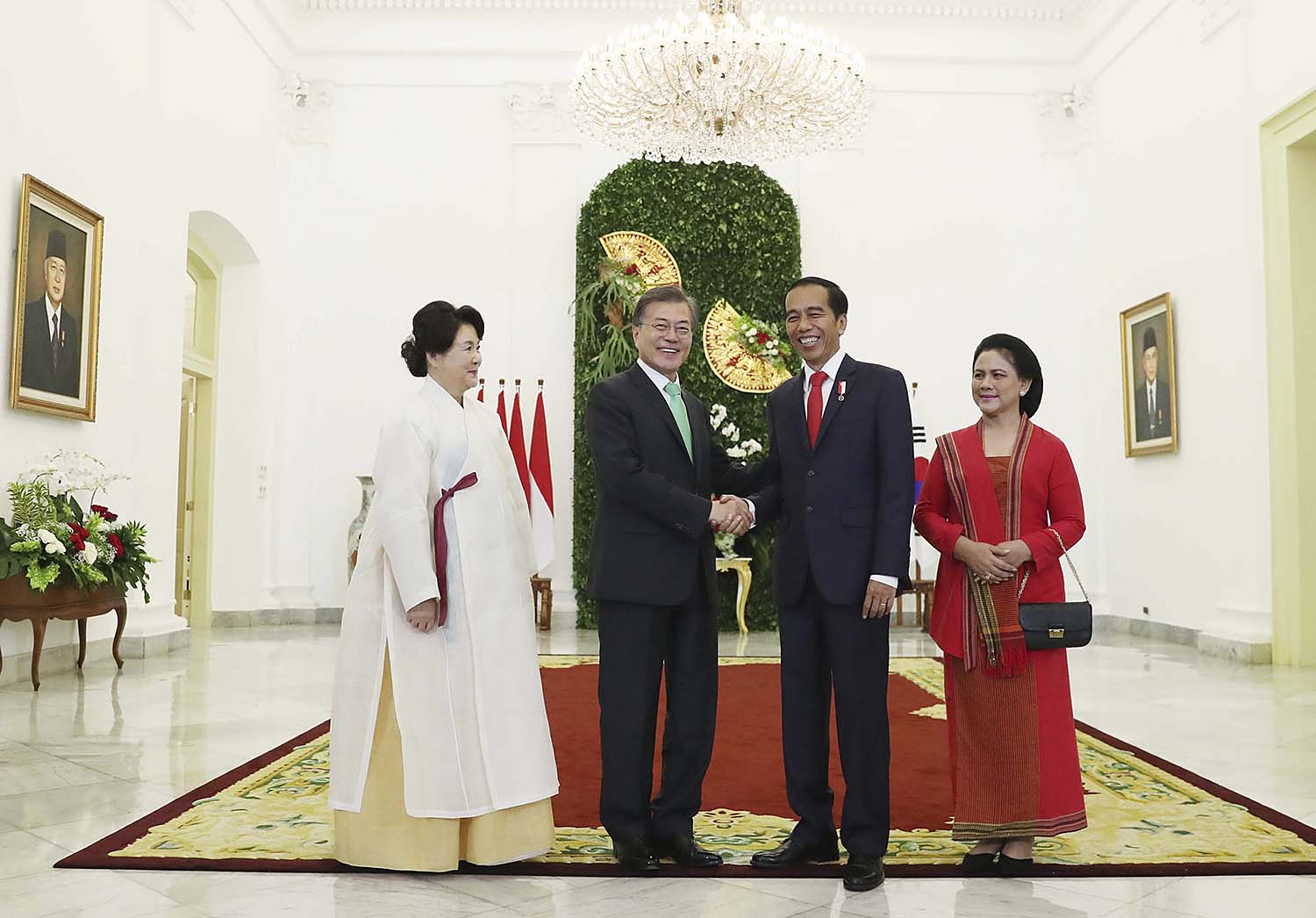 인도네시아를 국빈 방문한 문재인 대통령이 지난 9일 보고르 대통령궁에서 방명록을 쓰고 기념사진을 찍고 있다.