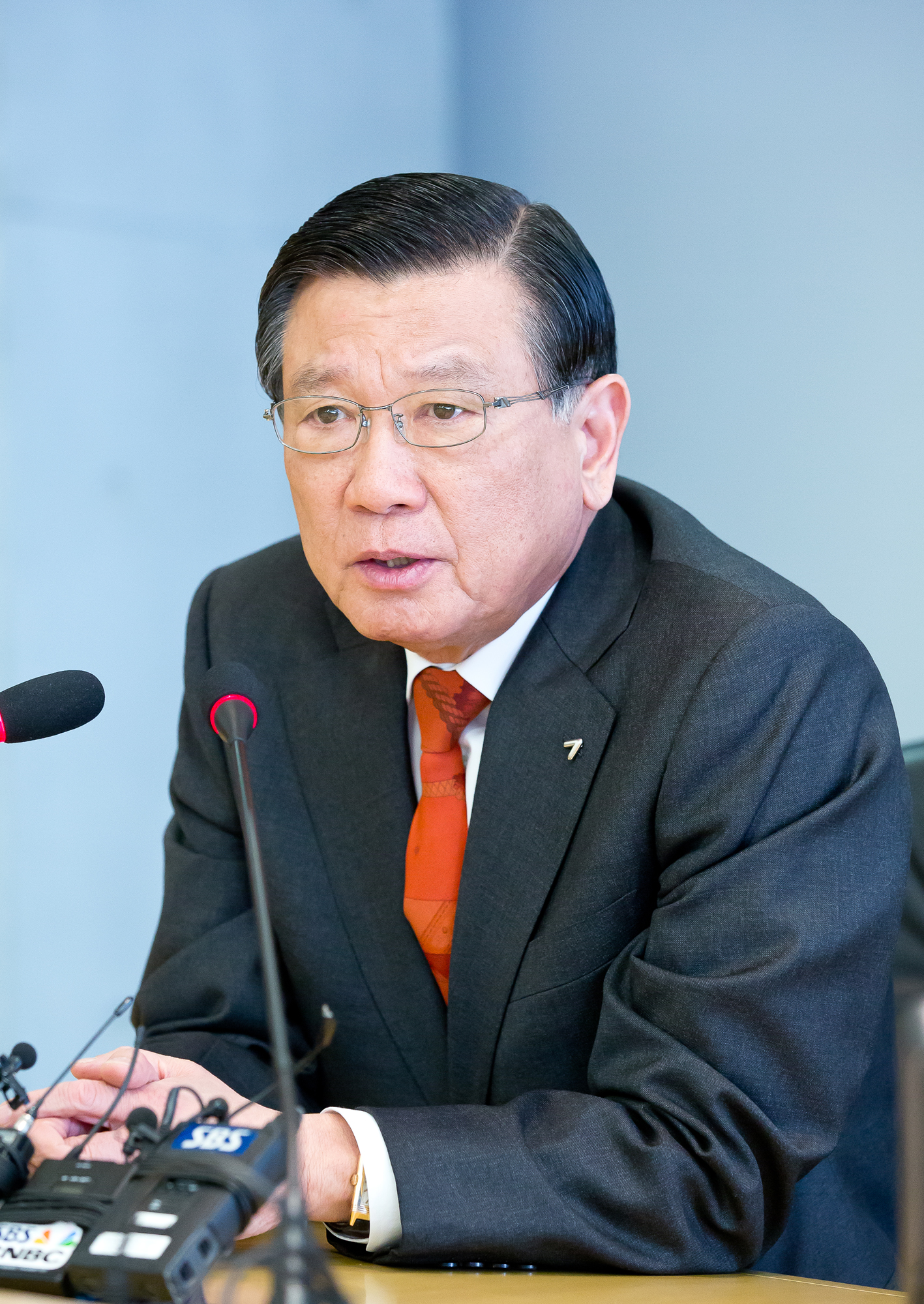 [서울=eoimage] 임준선 기자 = 28일 오후 서울 종로구 금호아시아나그룹 본사에서 박삼구 금호아시아나그룹 회장이 금호홀딩스와 금호고속 합병 완료에 따른 그룹 현안 등에 대한 발표 기자간담회를 하고 있다. 2017.11.28 eomaster@eoimage.co.kr