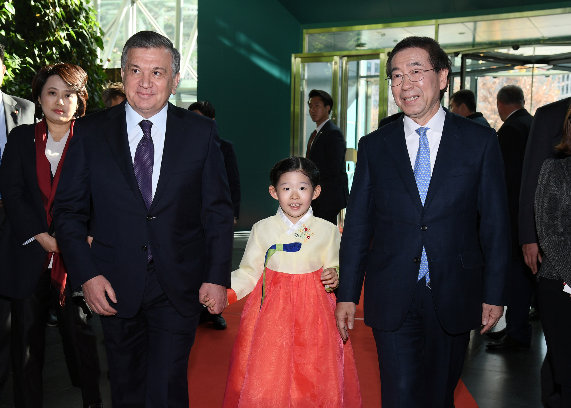 미르지요예프 우즈베키스탄 대통령이 24일 오후 서울시청사를 방문해 박원순 시장이 명예시민증을 수여하고 있다. 서울시 제공