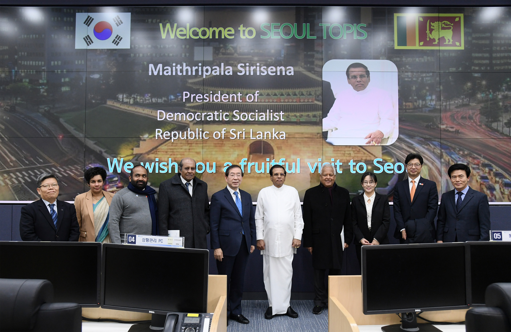 박원순 서울시장이 30일 오전 서울시청 영상회의실에서 국빈 방문 중인 마이트리팔라 시리세나(Maithripala Sirisena) 스리랑카 대통령에게 서울특별시 명예시민증을 수여하고 있다. 서울시 제공