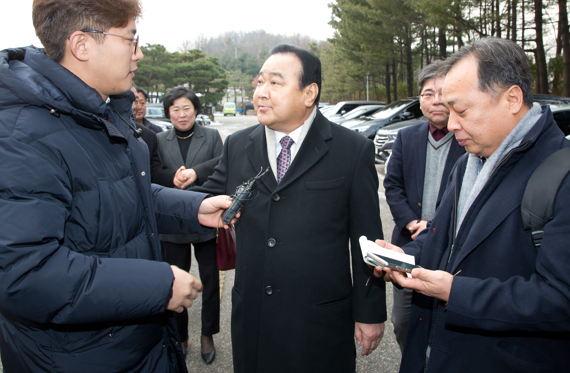 | 사진설명 | [서울=eoimage] (이오이미지) 임준선기자 =국회의원 재보궐 선거를 앞두고 고(故) 성완종 전 경남기업 회장으로부터 3천만원을 받은 혐의로 재판에 넘겨진 이완구 전 국무총리에게 무죄가 확정됐다. 이완구 전 국무총리가 22일 오후 서울 서초동 대법원 앞에서 입장을 밝히고 있다. 대법원 3부는 이날 정치자금법 위반 혐의로 기소된 이 전 총리의 상고심에서 무죄를 선고한 원심판결을 확정했다. 2017.12.22 |