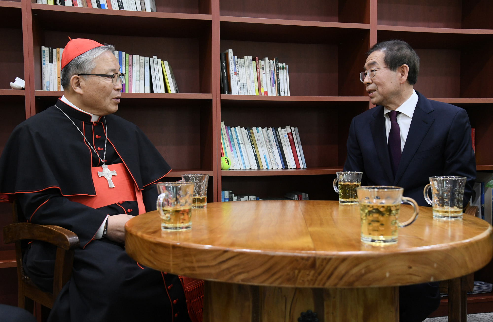 박원순 서울시장과 천주교 서울대교구장인 염수정 추기경은 27일 오전 서울시청에서 '태양광 발전 확대를 위한 업무협약'을 체결했다. 서울시 제공