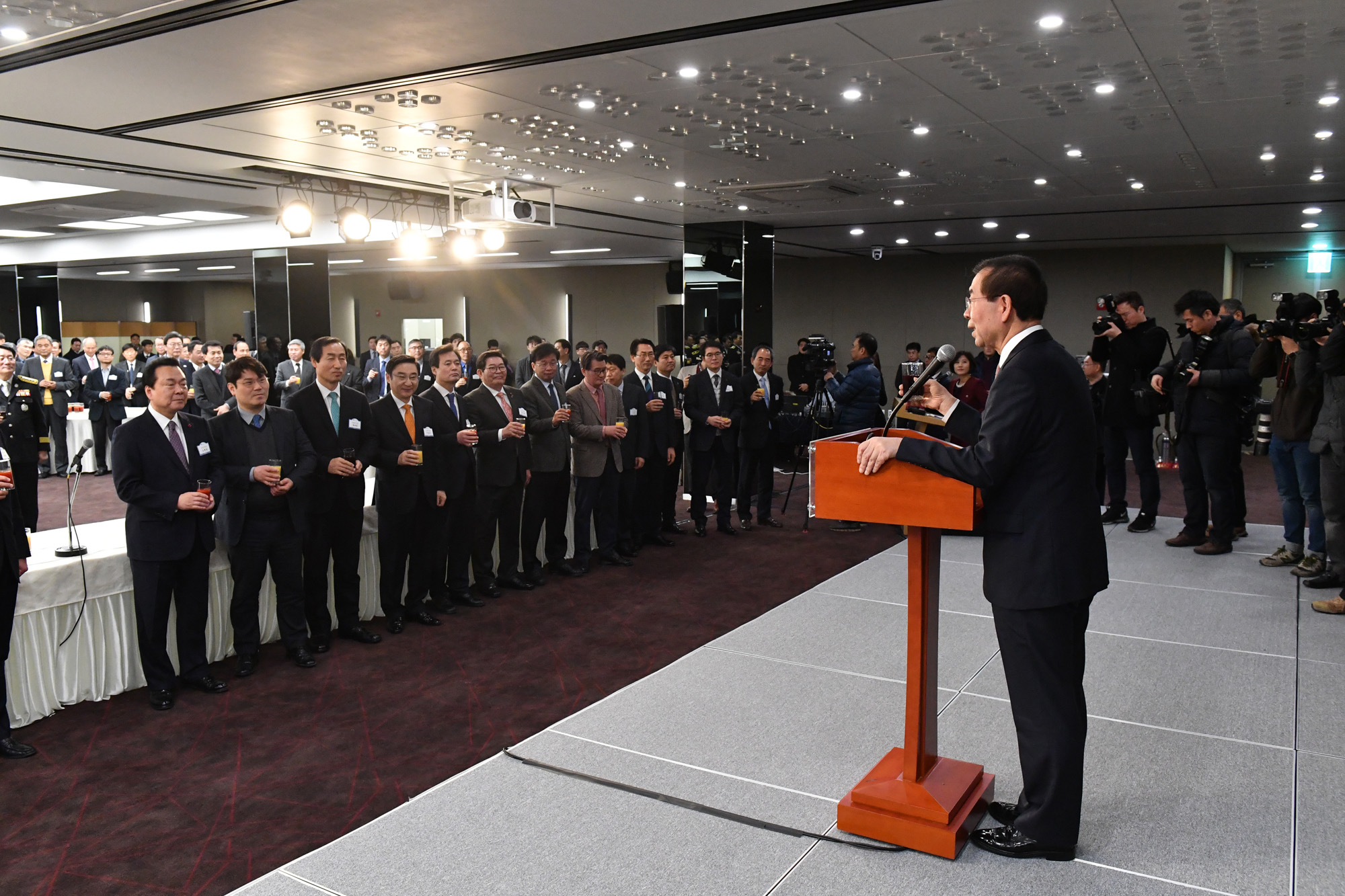 2일 오전 서울 종로구 세종문화회관에서 열린 서울특별시 2018년 시무식에서 박원순 서울시장이 신년사를 하고 있다. 서울시 제공