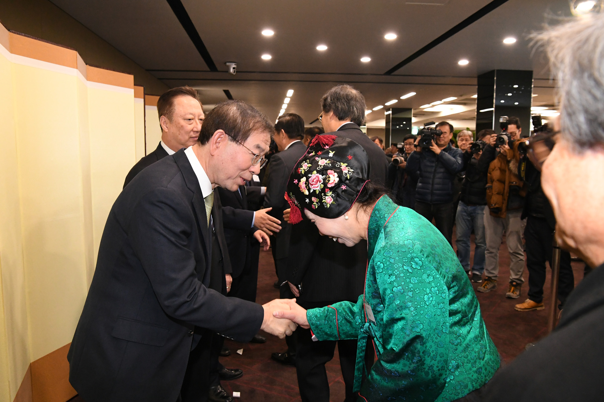 5일 종로구 세종문화회관에서 열린 서울시 신년인사회에서 박원순 서울시장이 참석자들과 인사를 하고 있다. 서울시 제공