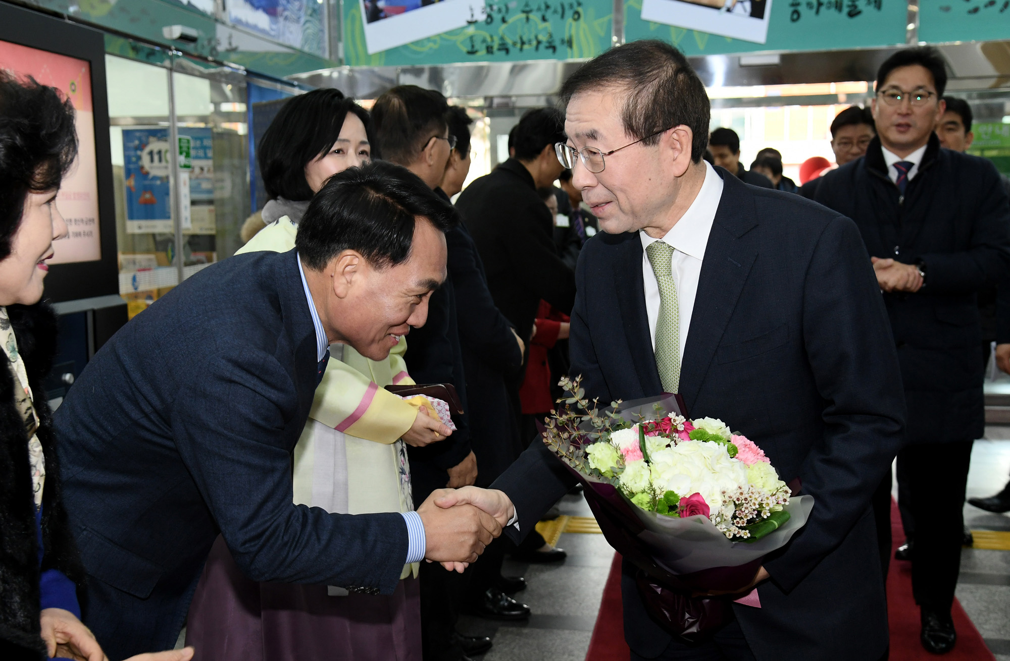 박원순 서울시장이 5일 서울 동작구청에서 열린 '2018년 동작구 신년인사회'에 참석해 인사말을 하고 있다. 서울시 제공