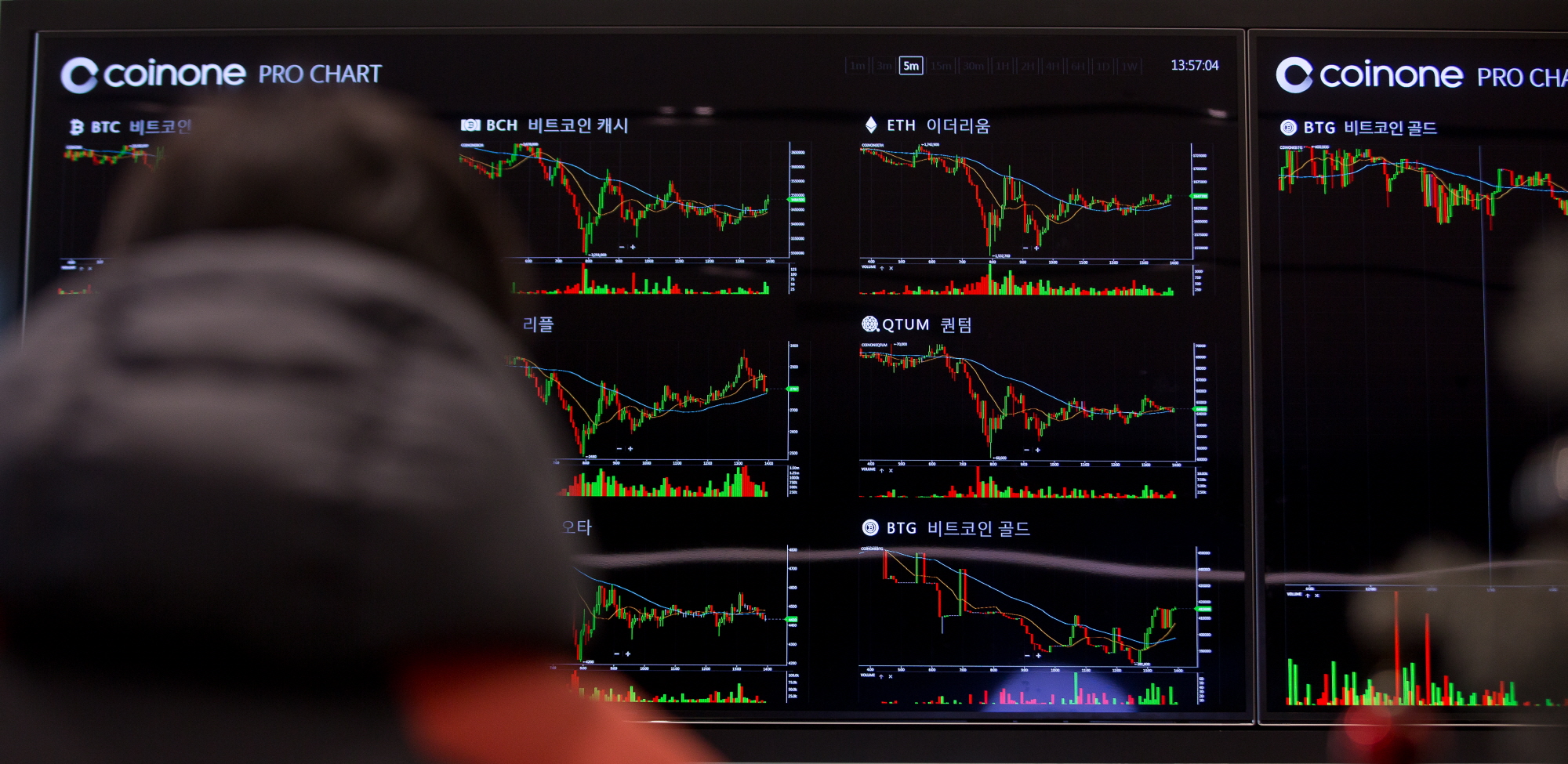 | 사진설명 | [서울=eoimage] 고성준 기자 = 법무부가 가상화폐 거래소 폐쇄 방침을 밝힌지 하루 지난 12일 오후 서울 영등포구에 위치한 가상화폐 거래소 '코인원블록스'를 찾은 시민들이 가상화폐 시세 전광판을 주시하고 있다. 법무부의 가상화폐 거래소 폐쇄 방침을 두고 한편에서는 찬성과 우려의 목소리가 대립하고 있다. 2018.1.12 |