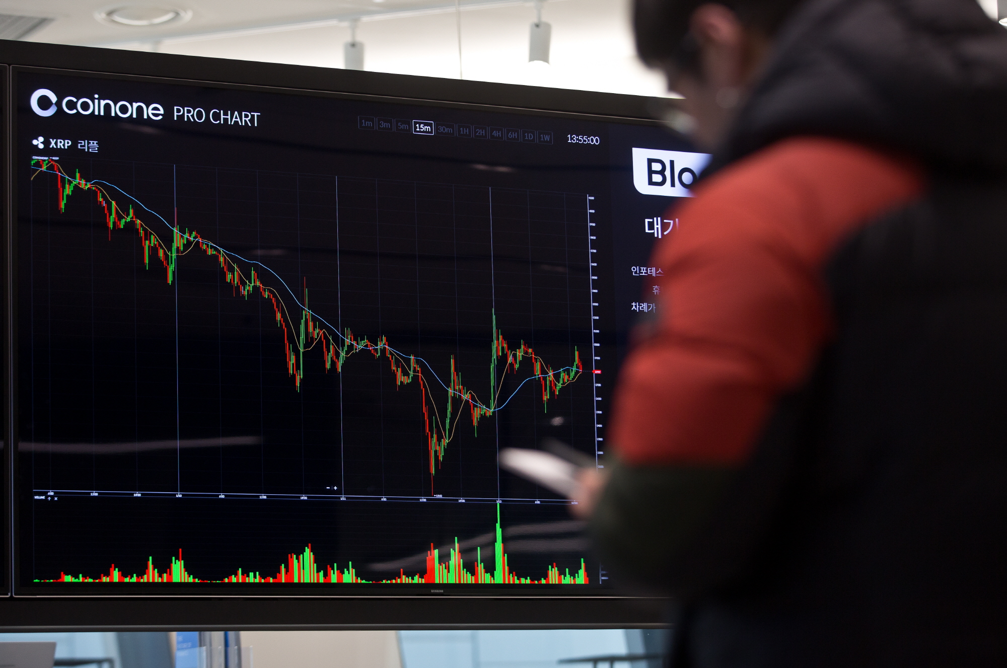 | 사진설명 | [서울=eoimage] 고성준 기자 = 법무부가 가상화폐 거래소 폐쇄 방침을 밝힌지 하루 지난 12일 오후 서울 영등포구에 위치한 가상화폐 거래소 '코인원블록스'를 찾은 시민들이 가상화폐 시세 전광판을 주시하고 있다. 법무부의 가상화폐 거래소 폐쇄 방침을 두고 한편에서는 찬성과 우려의 목소리가 대립하고 있다. 2018.1.12 |