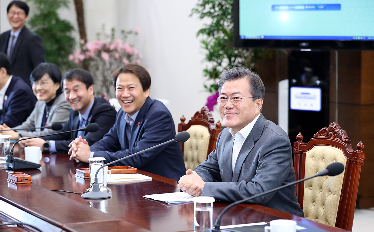 문재인 대통령이 15일 오후 청와대 여민관 소회의실에서 열린 수석보좌괸회의를 주재하고 있다. 2018.1.15
