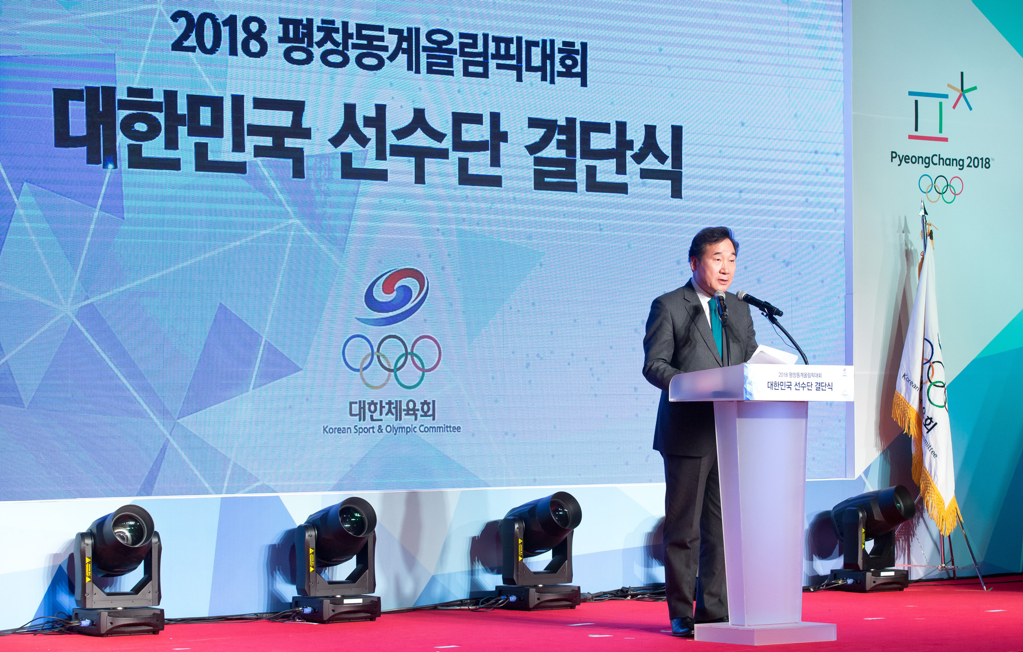 [서울=eoimage] (이오이미지) 임준선 기자 = 이낙연 국무총리가 24일 오후 송파구 올림픽파크텔에서 열린 '2018 평창동계올림픽 대한민국 선수단 결단식'에서 축사를 하고 있다