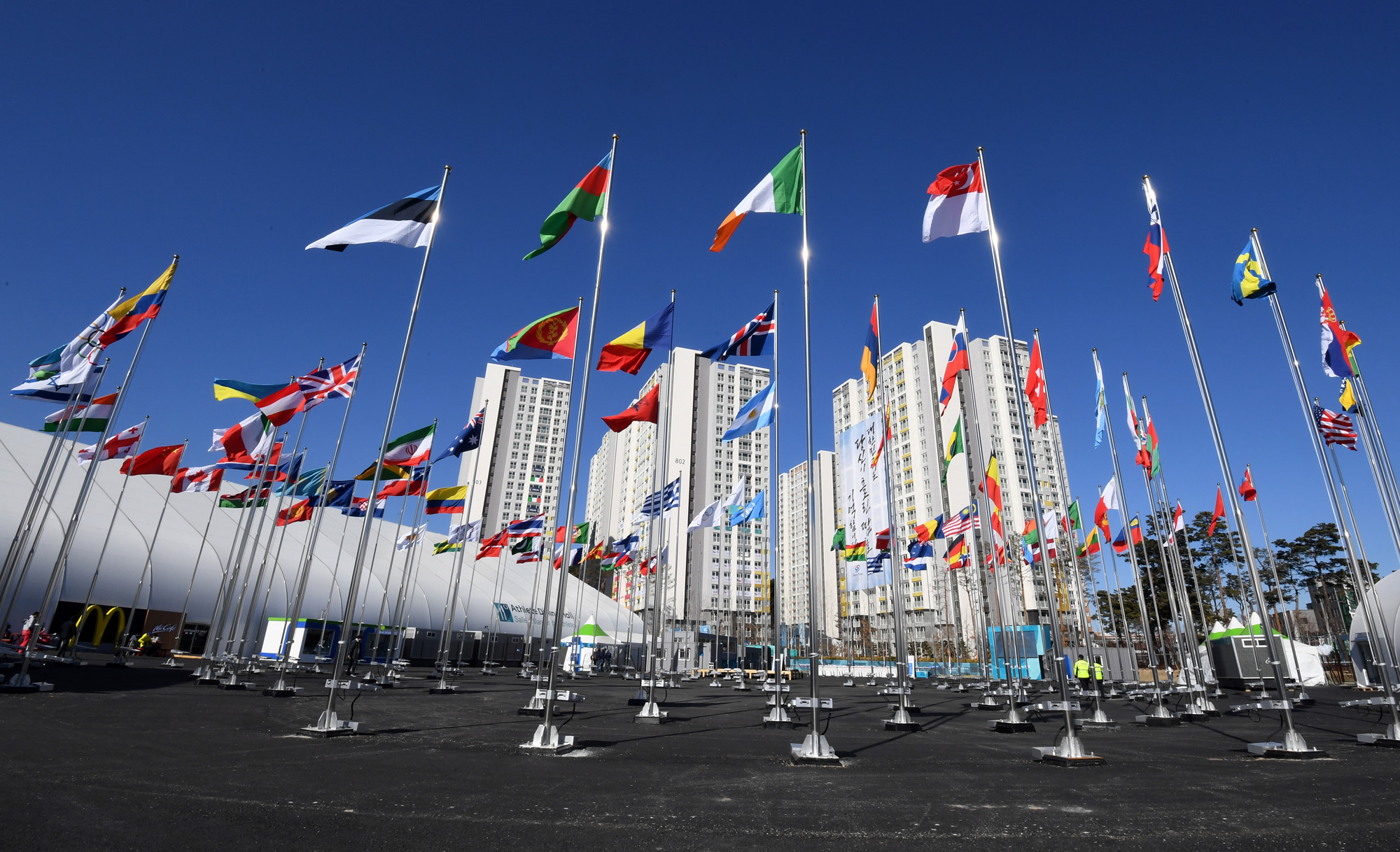 2018평창동계올림픽 개막 D-8일인 1일 오후 강원도 강릉선수촌에는 참가국들의 국기가 휘날리고 있다./강릉=임영무 기자=사진공동취재단