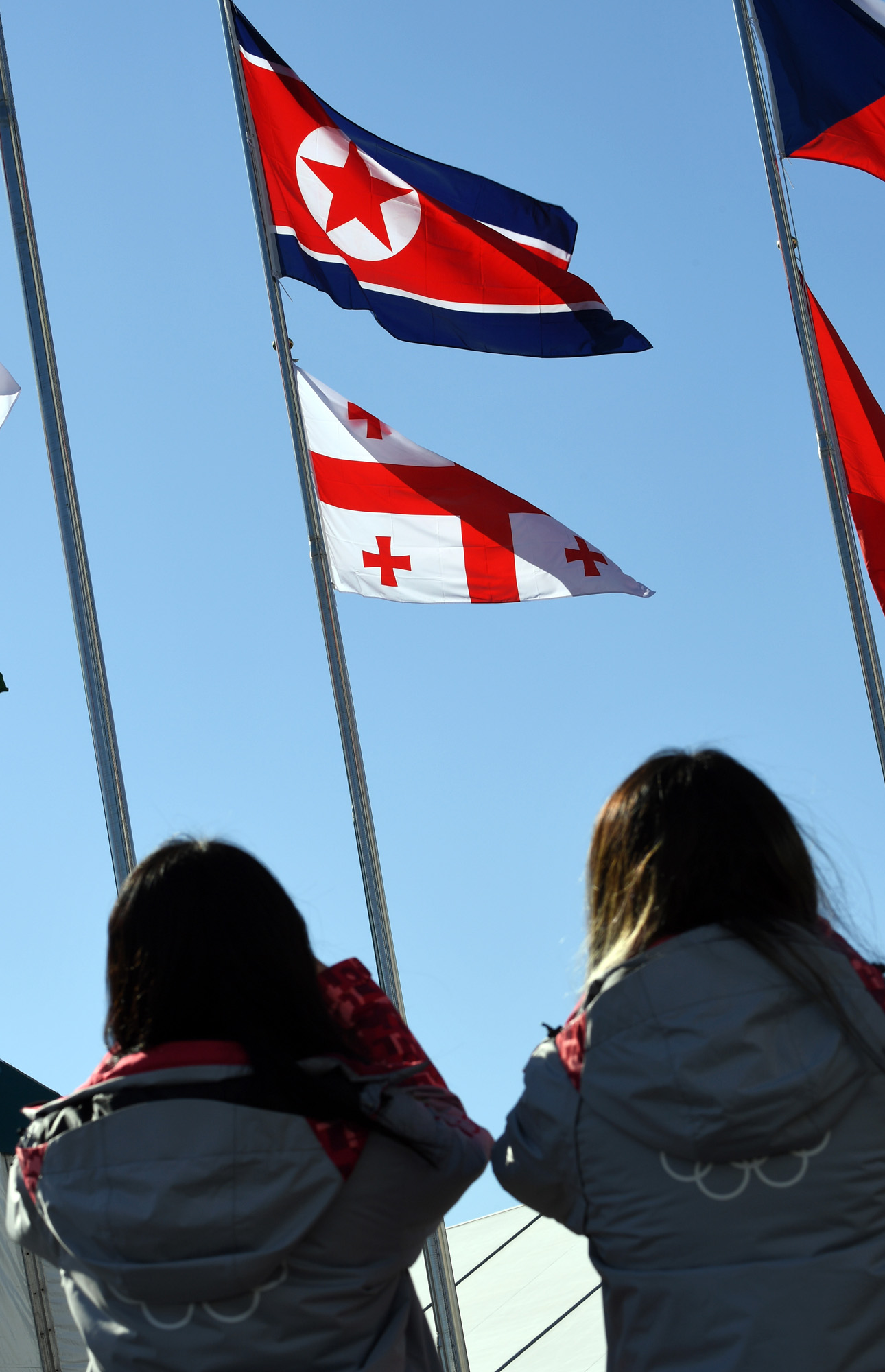 2018평창동계올림픽 개막 D-8일인 1일 오후 강원도 강릉선수촌에는 북한의 인공기가 휘날리고 있다./강릉=임영무 기자=사진공동취재단