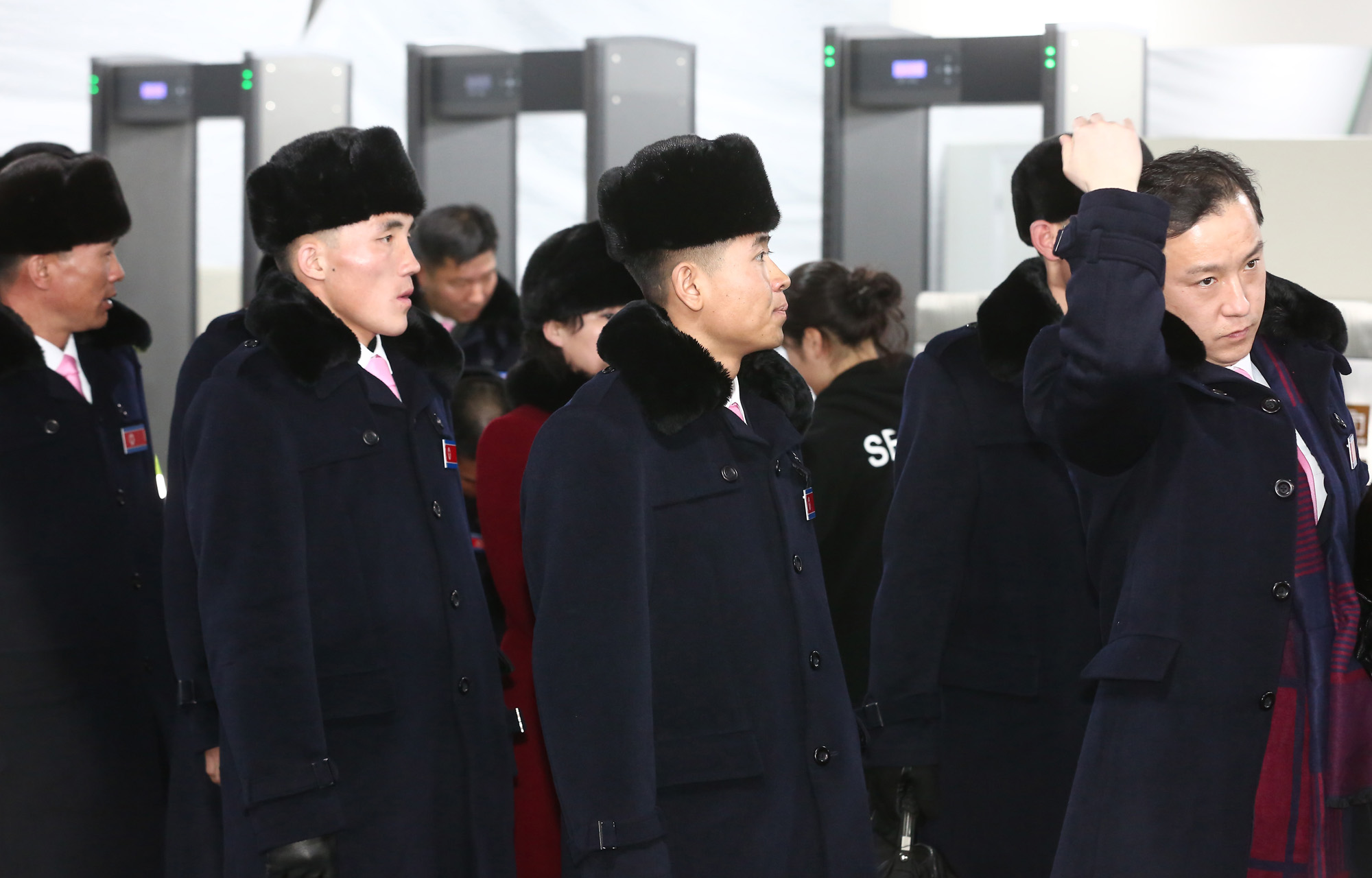 1일 오후 원길우 체육성 부상이 이끄는 북측 평창동계올림픽 참가 선수단이 강릉 선수촌에 입촌하고 있다.