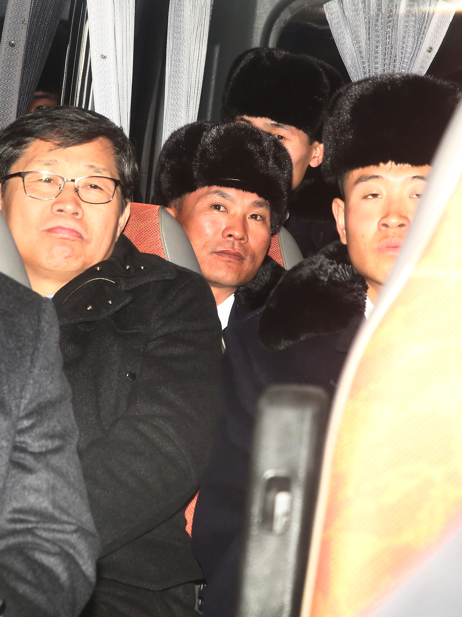 원길우 체육성 부상이 이끄는 북측 평창동계올림픽 참가 선수단이 양양공항을 통해 입국하고 있다.