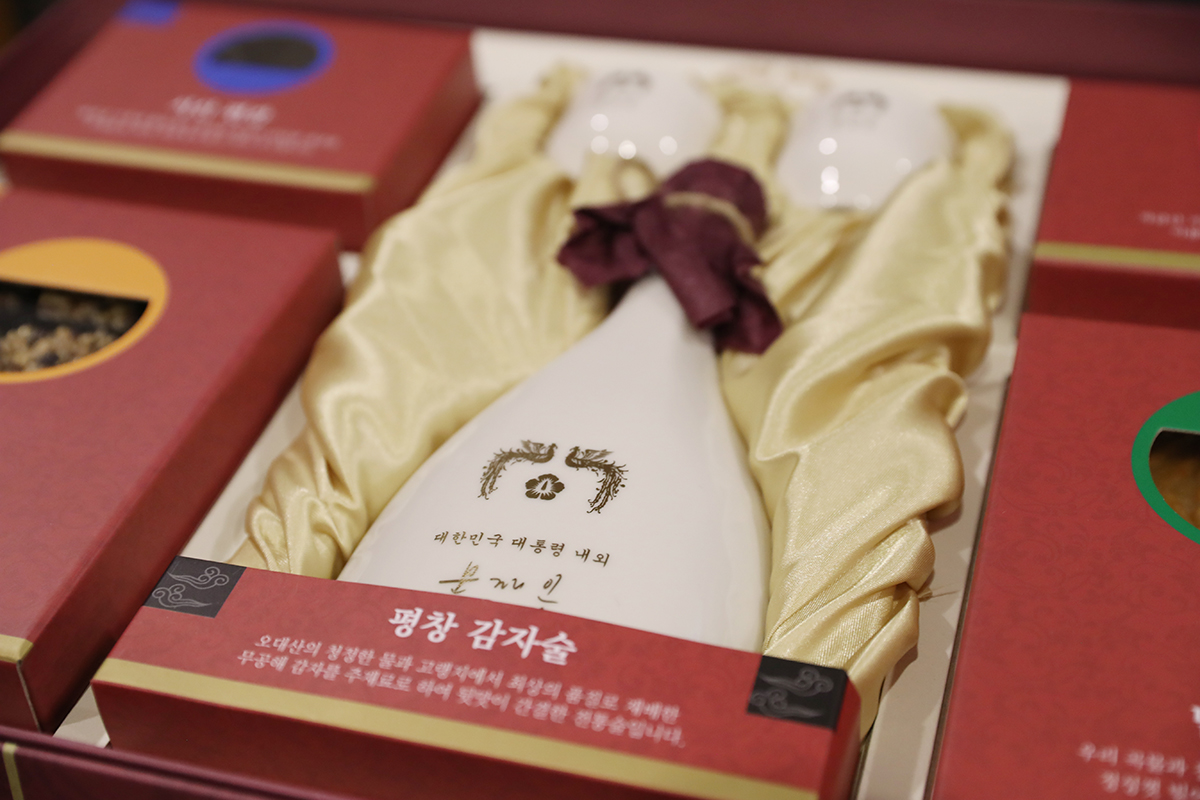 새해 2018년 무술년(戊戌年) 청와대 문재인대통령의 설 선물세트는 전통주와 한과 세트로 준비.
