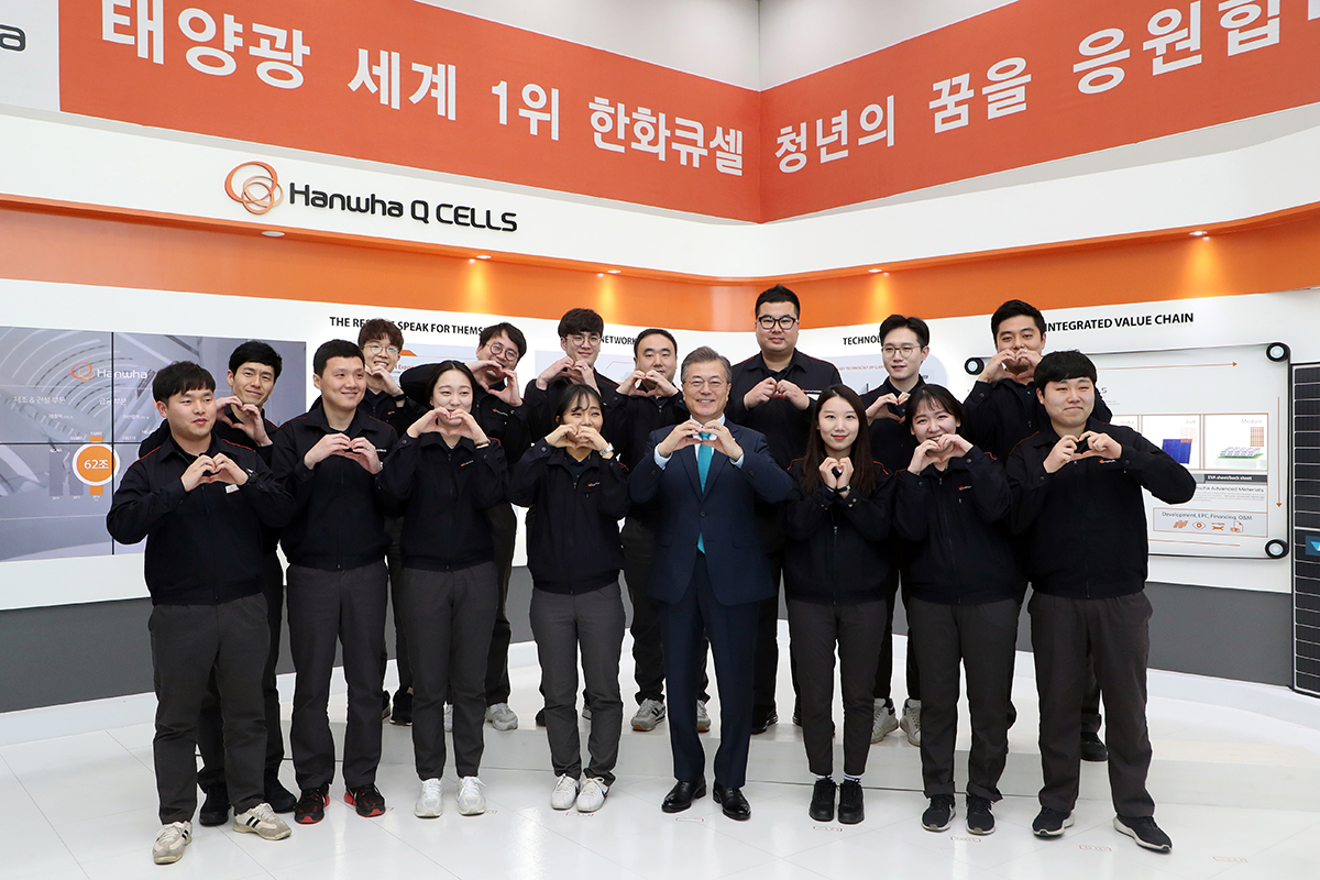 문 대통령이 국내에 있는 10대 대기업 산업 현장을 방문한 것은 이번이 처음이다. 문 대통령은 이날 오전 한화큐셀 노사가 진행한 일자리 나누기 공동선언식에 참석하고 공장 관계자들을 격려했다.