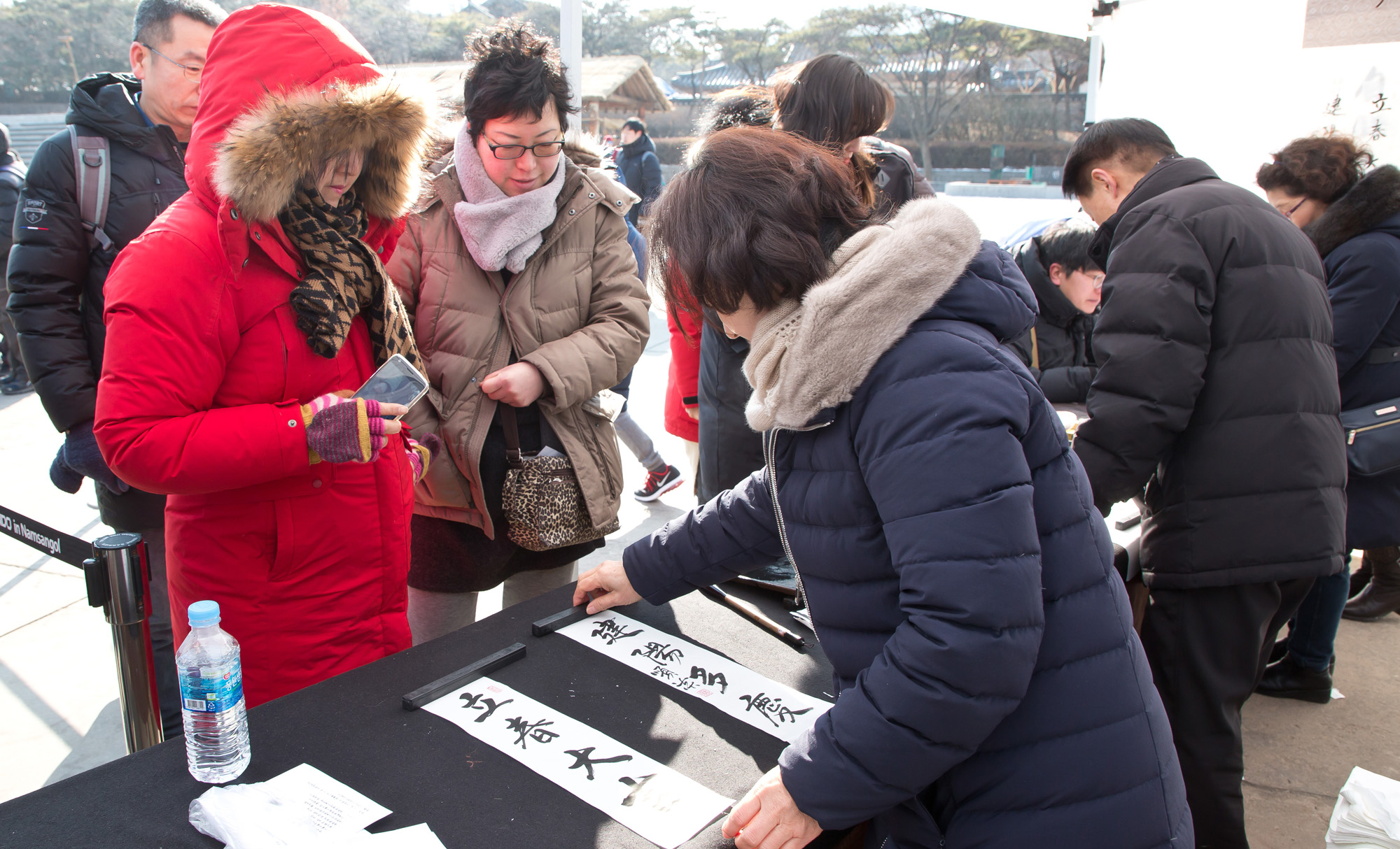 [서울=eoimage] (이오이미지)임준선 기자 = 입춘인 4일 오전 서울 남산골한옥마을에서 열린 '반가운 봄, 입춘' 행사에서 입춘첩 무료 나눔 행사를 하고 있다. 2018.02.04eomaster@eoimage.co.kr
