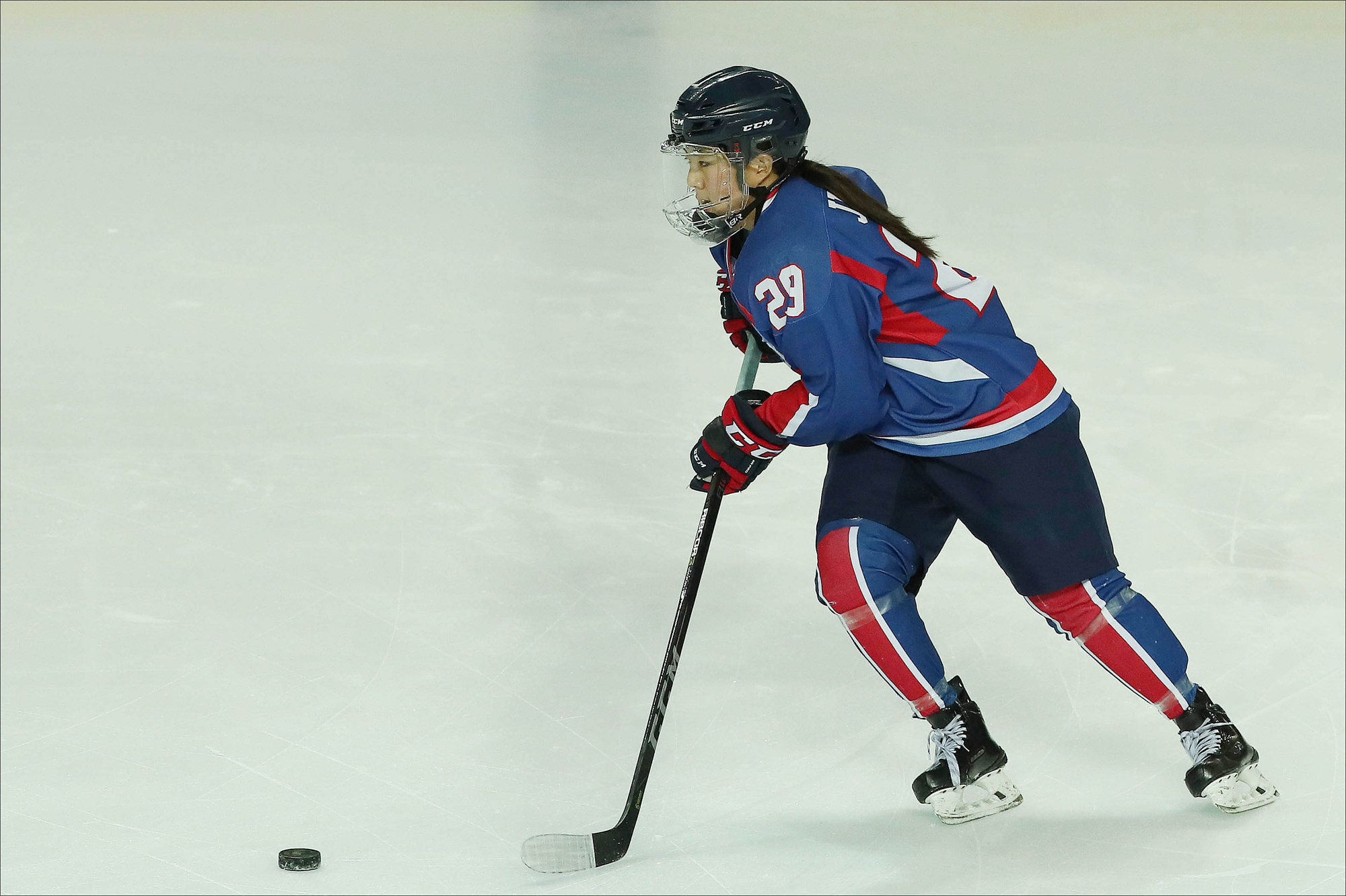 2018 평창 동계올림픽 여자 아이스하키 남북단일팀 선수들이 4일 오후 인천 선학국제빙상경기장에서 열린 스웨덴과의 평가전에 앞서 몸을 풀고 있다. 2018.02.04 사진공동취재단
