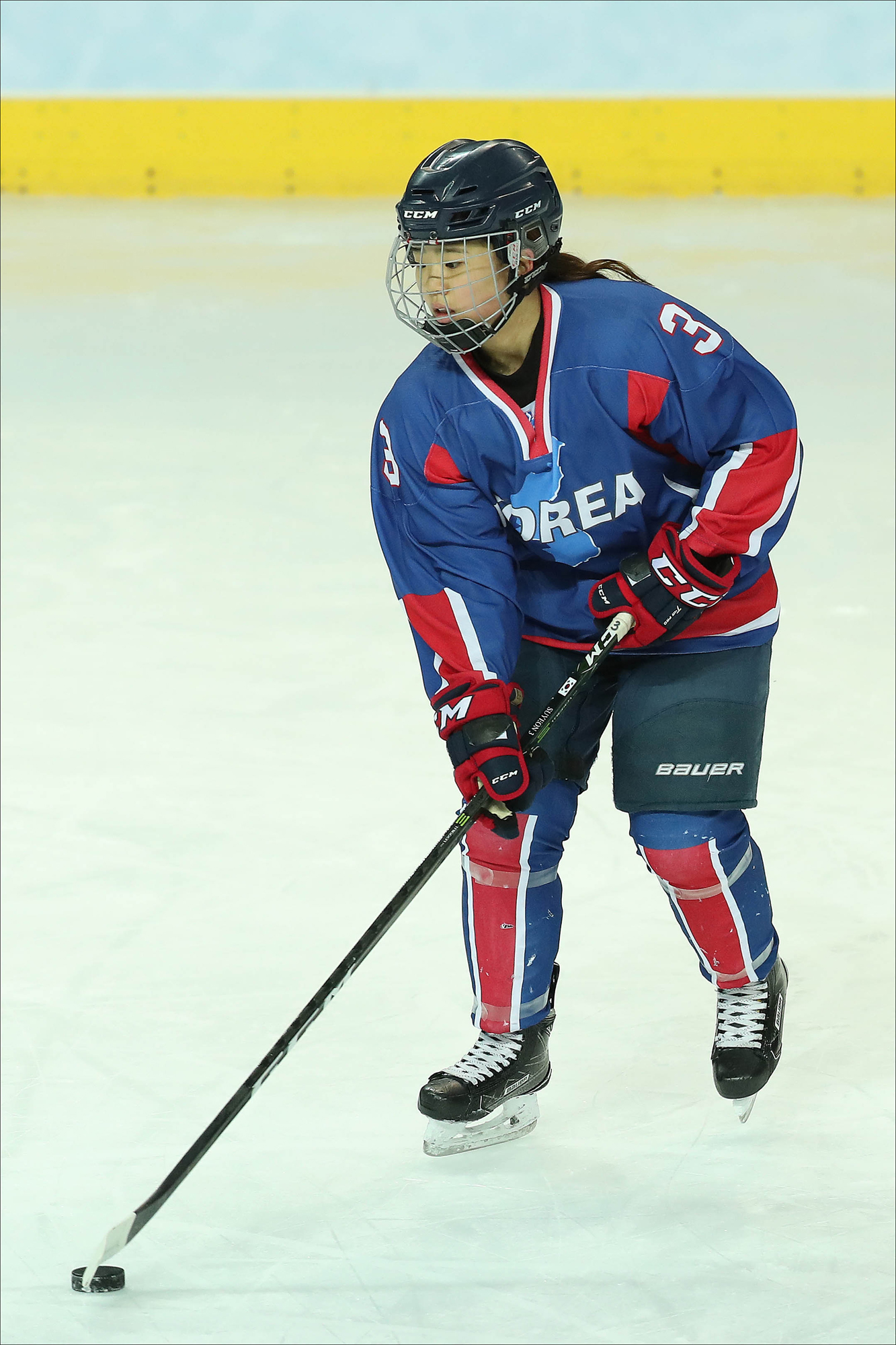 2018 평창 동계올림픽 여자 아이스하키 남북단일팀 선수들이 4일 오후 인천 선학국제빙상경기장에서 열린 스웨덴과의 평가전에 앞서 몸을 풀고 있다. 2018.02.04 사진공동취재단