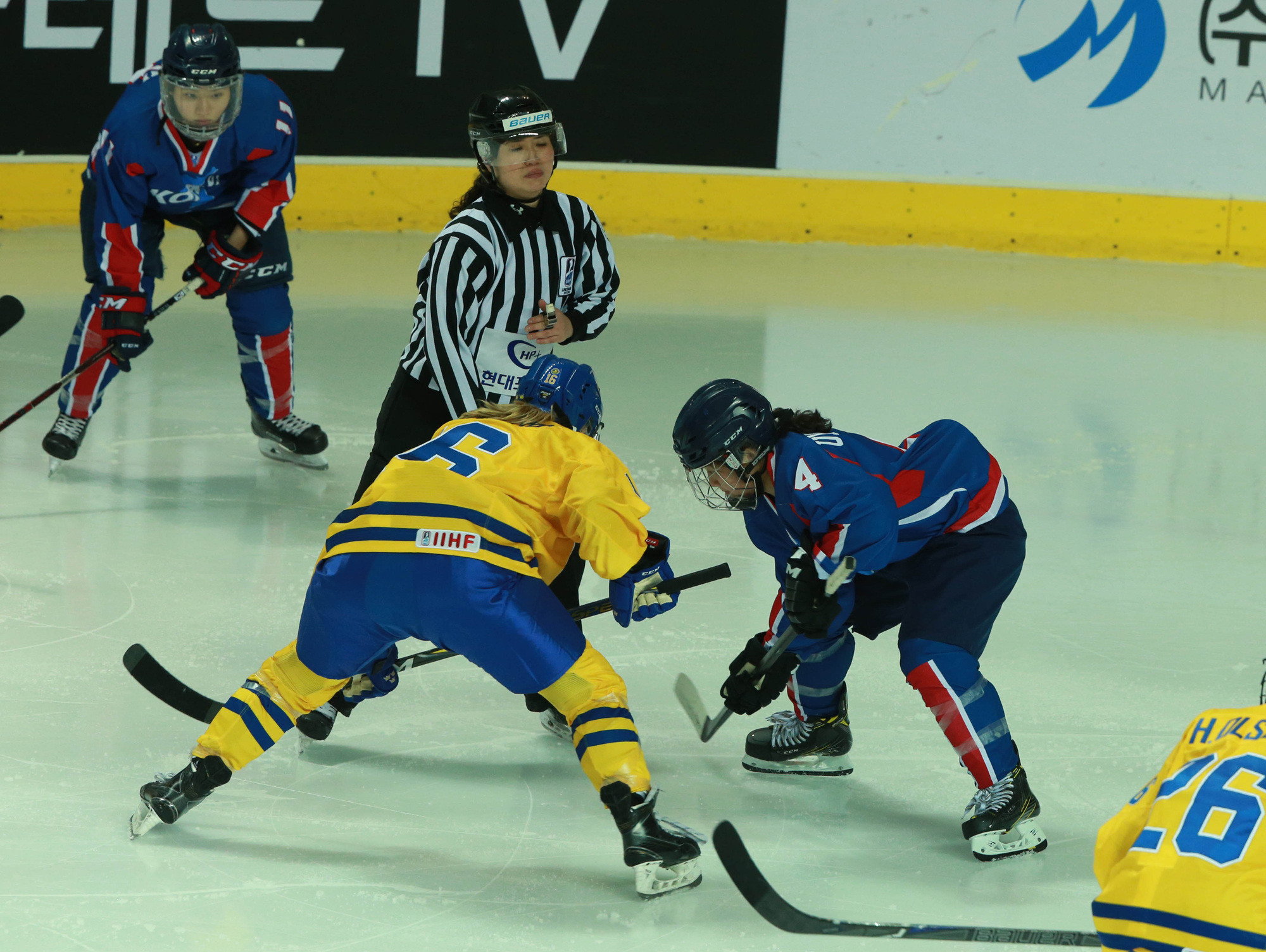 2018 평창 동계올림픽 여자 아이스하키 남북단일팀 선수들이 4일 오후 인천 선학국제빙상경기장에서 스웨덴과 평가전을 갖고 있다. 2018.02.04 사진공동취재단