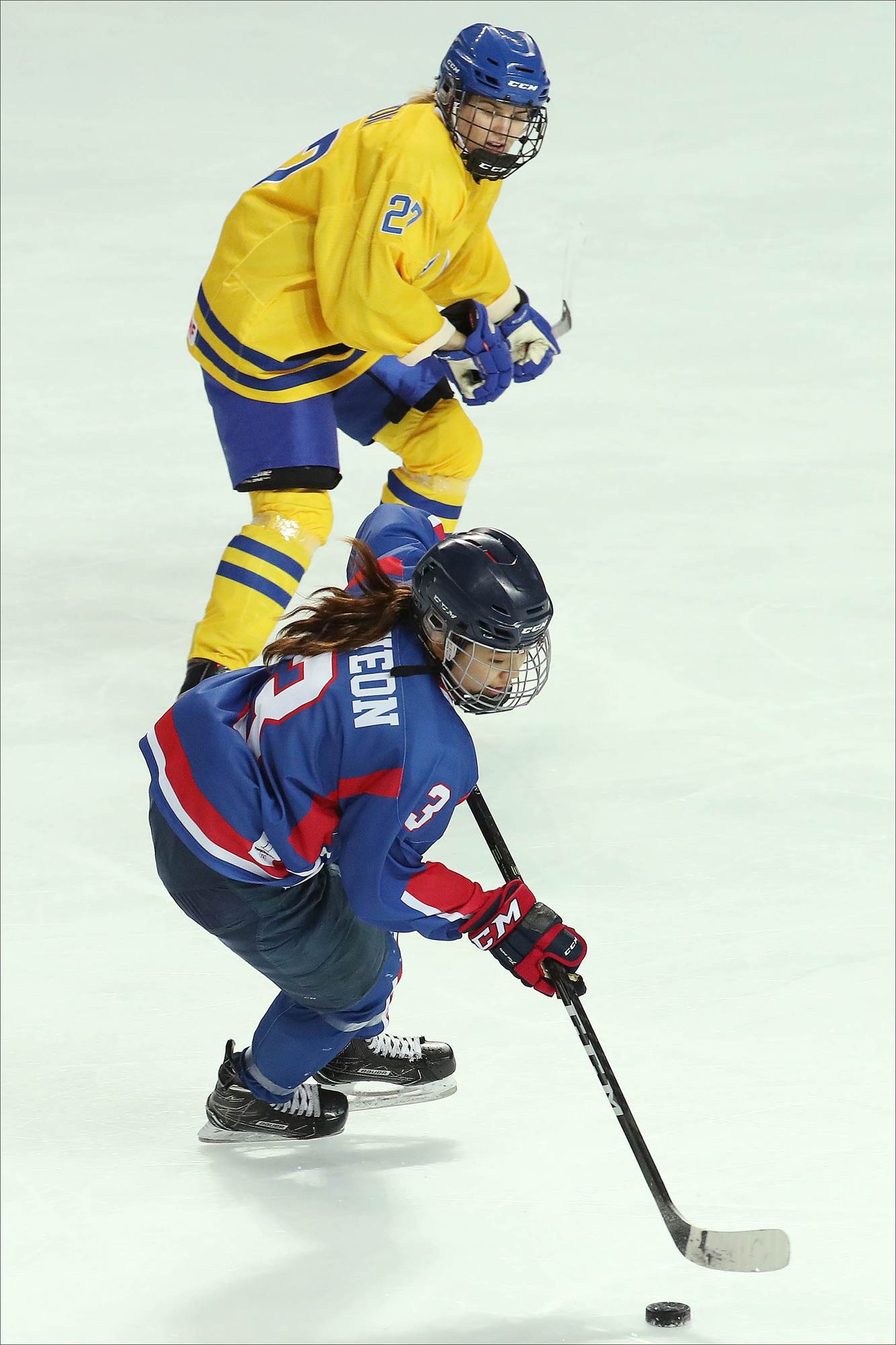 2018 평창 동계올림픽 여자 아이스하키 남북단일팀 선수들이 4일 오후 인천 선학국제빙상경기장에서 스웨덴과 평가전을 갖고 있다. 2018.02.04 사진공동취재단