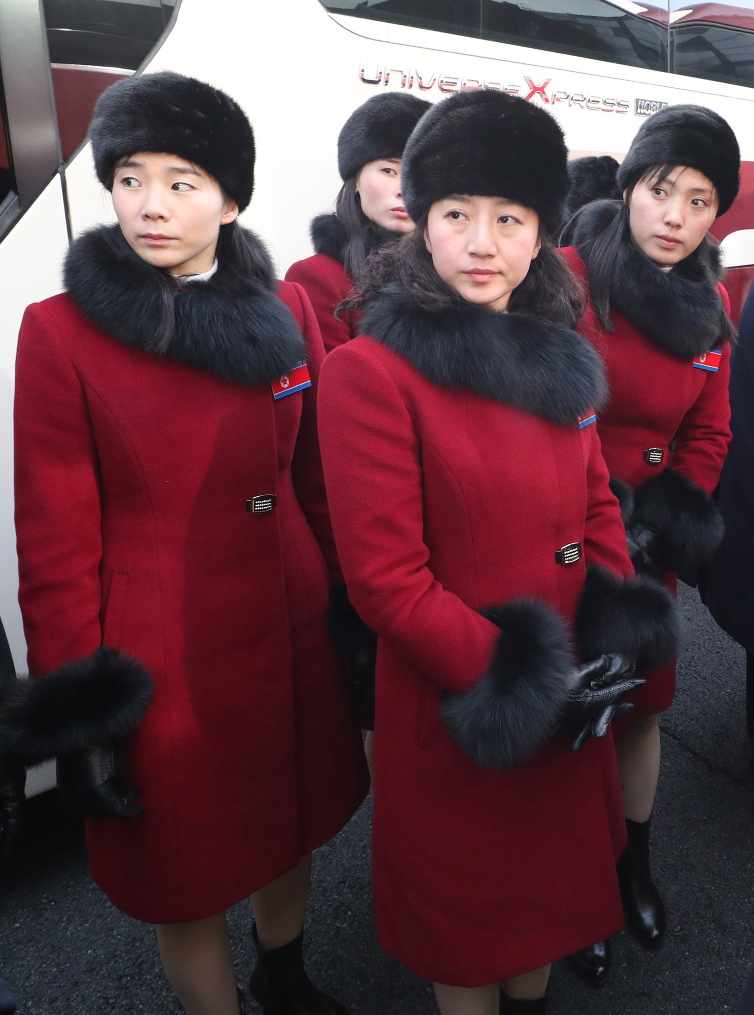 북한 태권도 시범단 여자 선수들이 7일 오전 경기도 파주시 남북출입사무소(CIQ)를 통해 입경하고 있다. 방남 인원은 북한 민족올림픽위원회(NOC) 관계자 4명, 응원단 229명, 태권도 시범단 26명, 기자단 21명 등 280명이다. /사진공동취재단