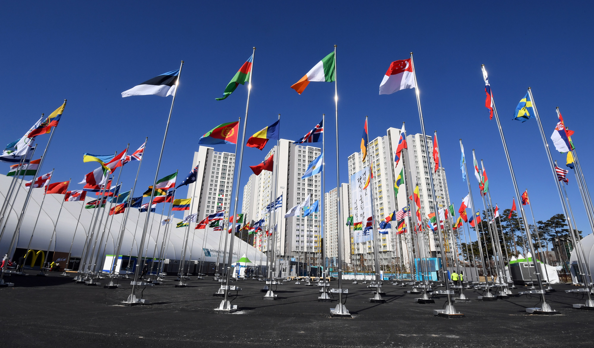 2018평창동계올림픽 개막 D-8일인 1일 오후 강원도 강릉선수촌에는 올림픽 참가국들의 국기가 휘날리고 있다. 18.02.01. 사진공동취재단.