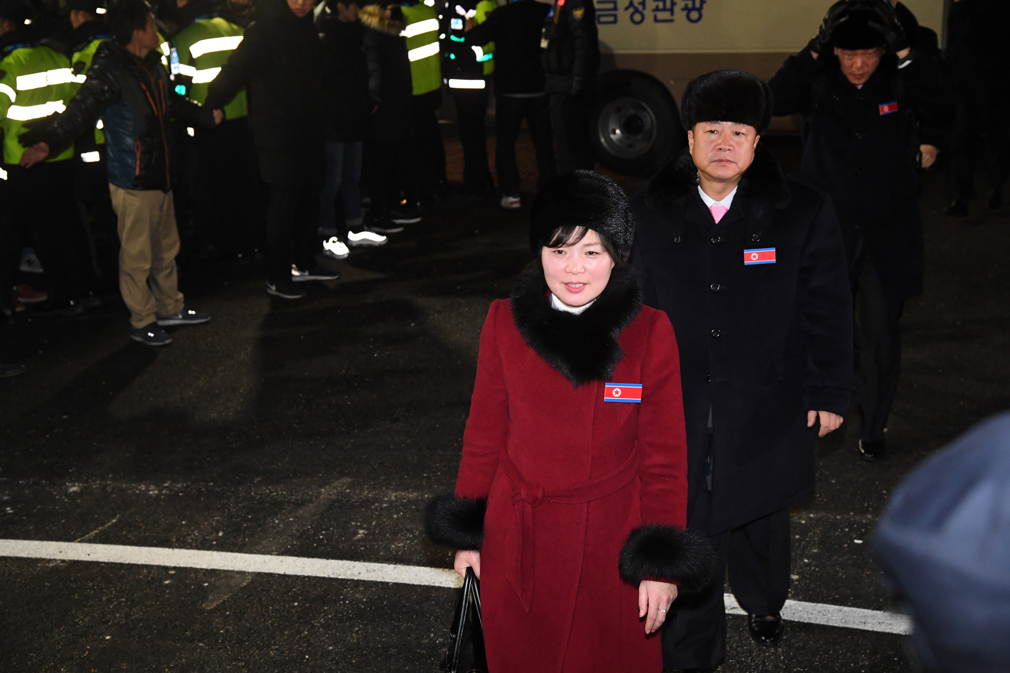 2일 저녁 2018 평창동계올림픽에 출전하는 북한대표팀 선수단과 본진이 강원도 강릉 올림픽 선수촌에 도착하고 있다. 18.02.01. 사진공동취재단.