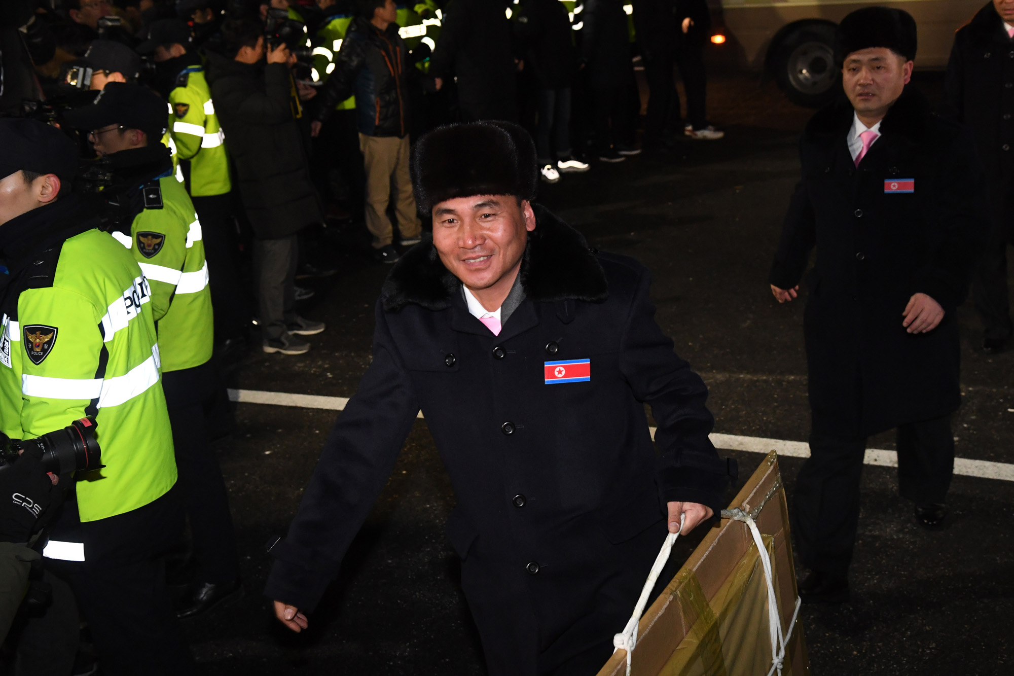 2일 저녁 2018 평창동계올림픽에 출전하는 북한대표팀 선수단과 본진이 강원도 강릉 올림픽 선수촌에 도착하고 있다. 18.02.01. 사진공동취재단.