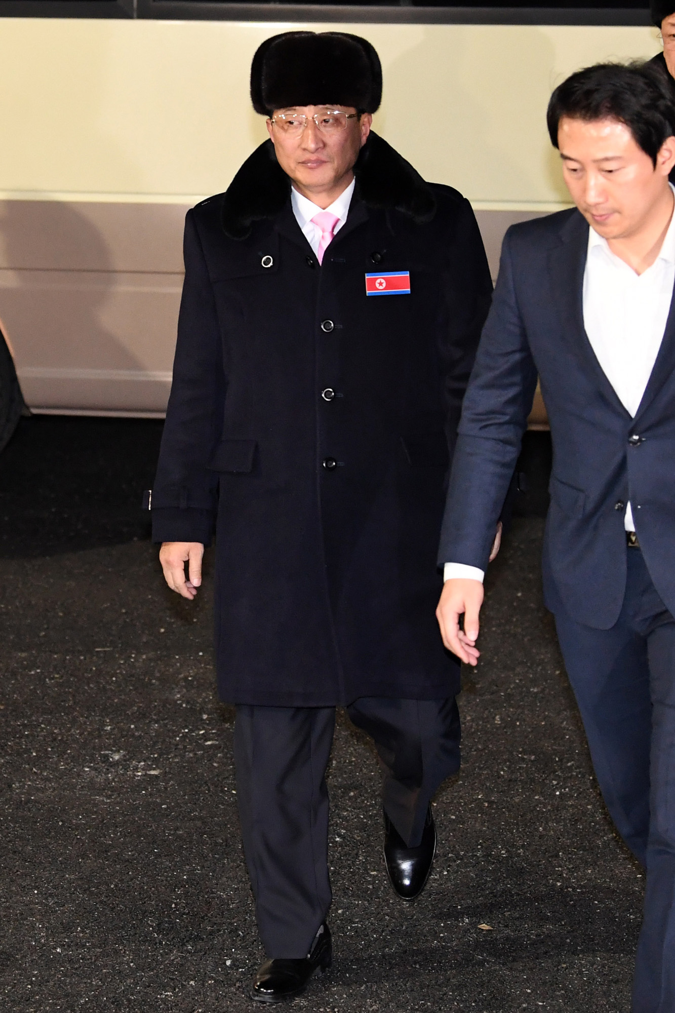 2일 저녁 2018 평창동계올림픽에 출전하는 북한대표팀 원길우 체육성 부상 선수단장이 강원도 강릉 올림픽 선수촌에 도착하고 있다. 18.02.01. 사진공동취재단.