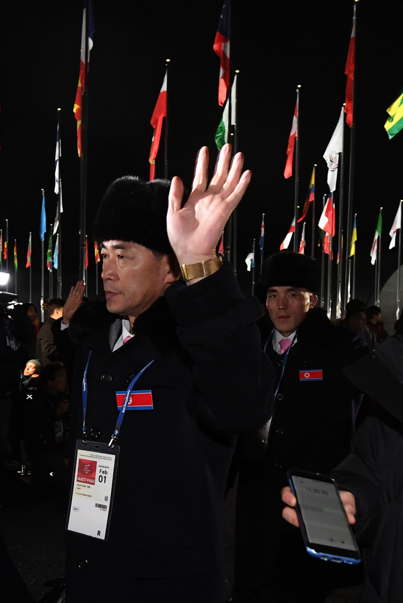 2018평창동계올림픽에 참가하는 북한 선수단 32명이 1일 오후 강원도 강릉시 강릉선수촌으로 입촌하고 있다. 북한 선수 10명을 포함한 북측 인원 32명은 1일 오후 양양공항을 통해 방남한 뒤 이어 강릉으로 이동해 입촌 절차를 마쳤다. 18.02.01. 사진공동취재단.