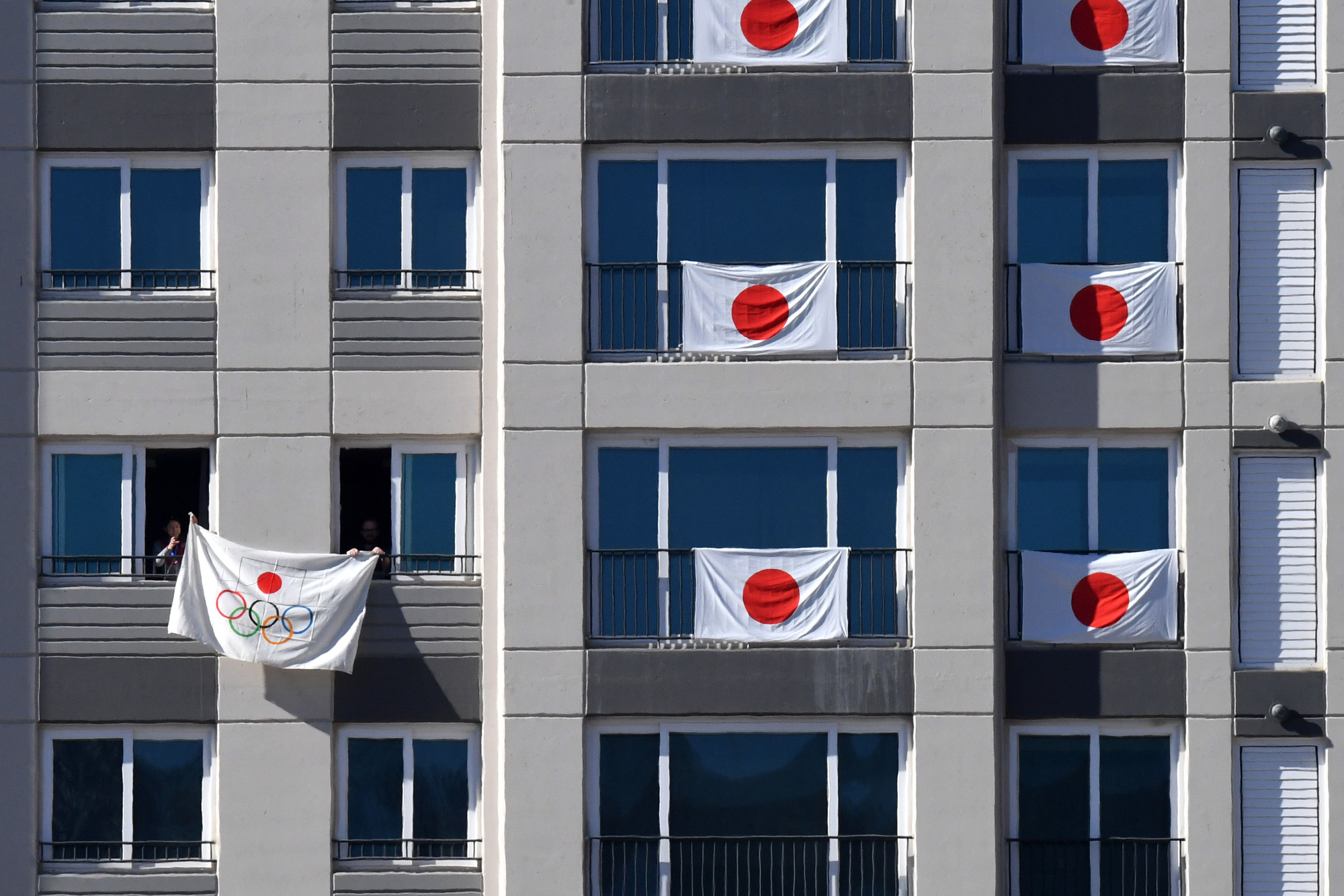 1일 오후 강원도 평창군 평창선수촌에서 개촌식을 앞둔 가운데 일본 선수 숙소에서 깃발을 걸고 있다. 18.02.01. 사진공동취재단.