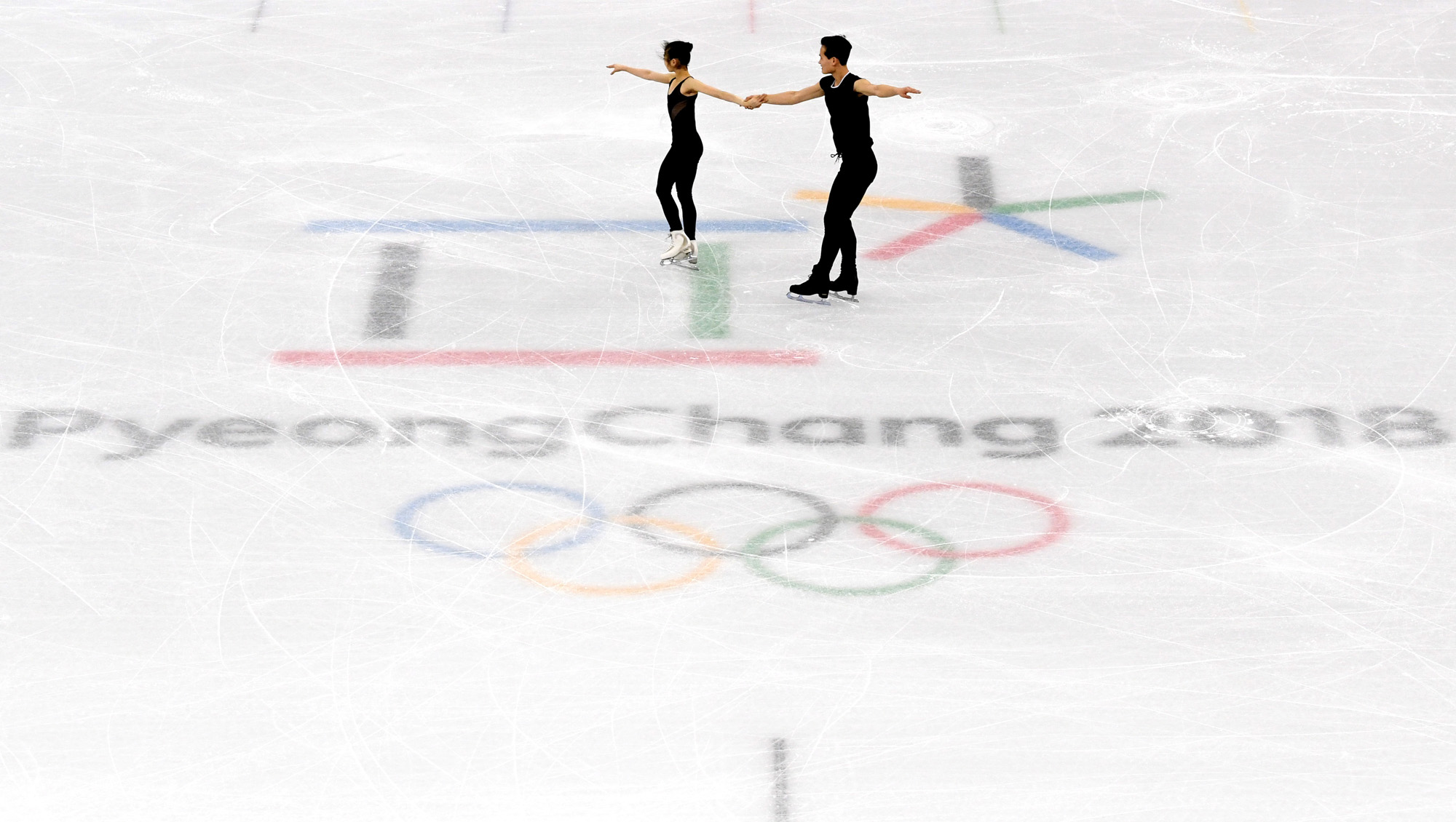 5일 오후 강원도 강릉시 강릉 아이스아레나에서 2018 평창동계올림픽 피겨 페어에 출전하는 북한 렴대옥-김주식 조가 훈련을 펼치고 있다. 18.02.05. 사진공동취재단.