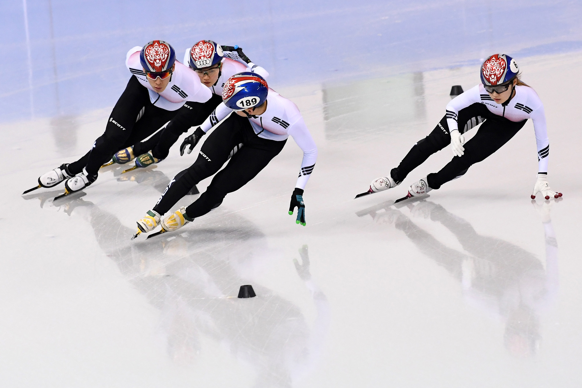 2018 평창동계올림픽에 출전하는 최민정, 심석희를 비롯한 한국 쇼트트랙 대표팀이 6일 오전 강원도 강릉영동대학교 빙상장에서 훈련에 매진하고 있다. 18.02.06. 사진공동취재단.