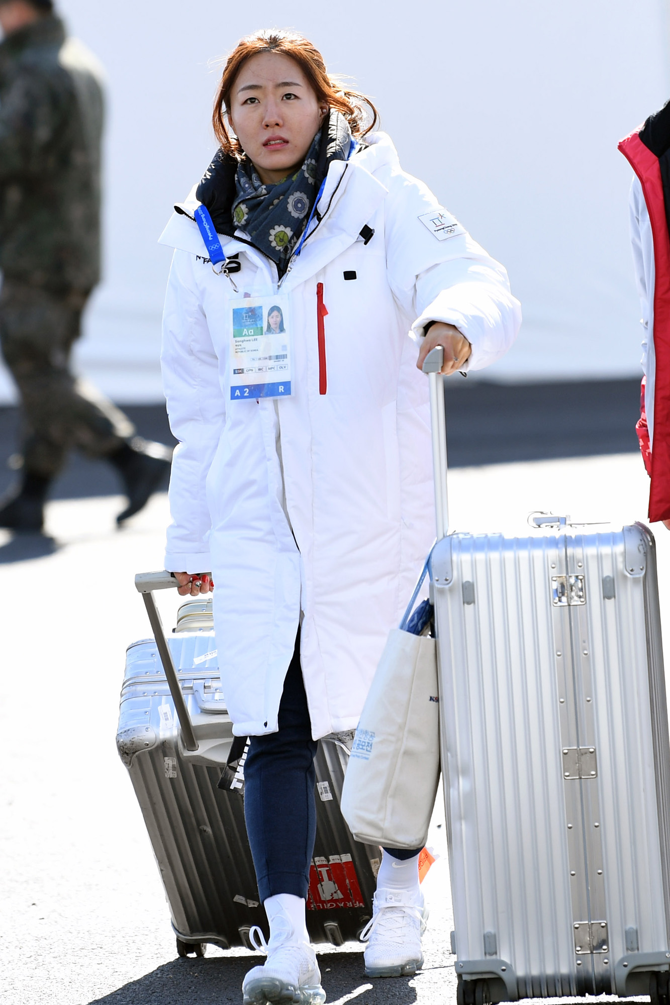 2018 평창동계올림픽 스피드스케이팅에 출전하는 이상화가 6일 오후 강릉선수촌에 들어서고 있다. 18.02.06. 사진공동취재단.