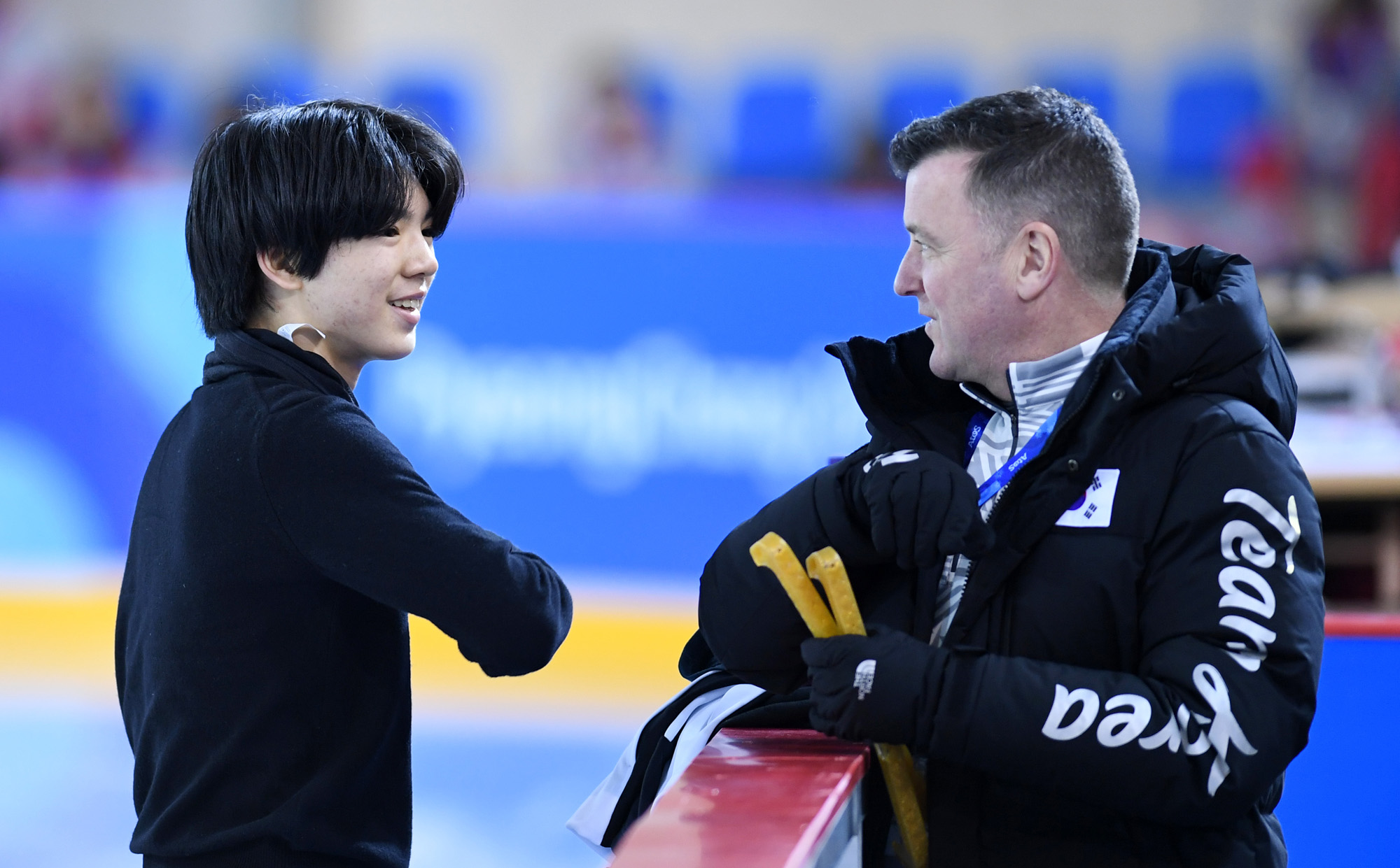 남자 피겨 차준환이 2018평창동계올림픽 개막을 D-3일 앞둔 6일 오전 강원도 강릉시 강릉아레나 연습 링크에서 훈련을 마친뒤 브라이언 오서 코치와 이야기하고 있다. 18.02.06. 사진공동취재단.