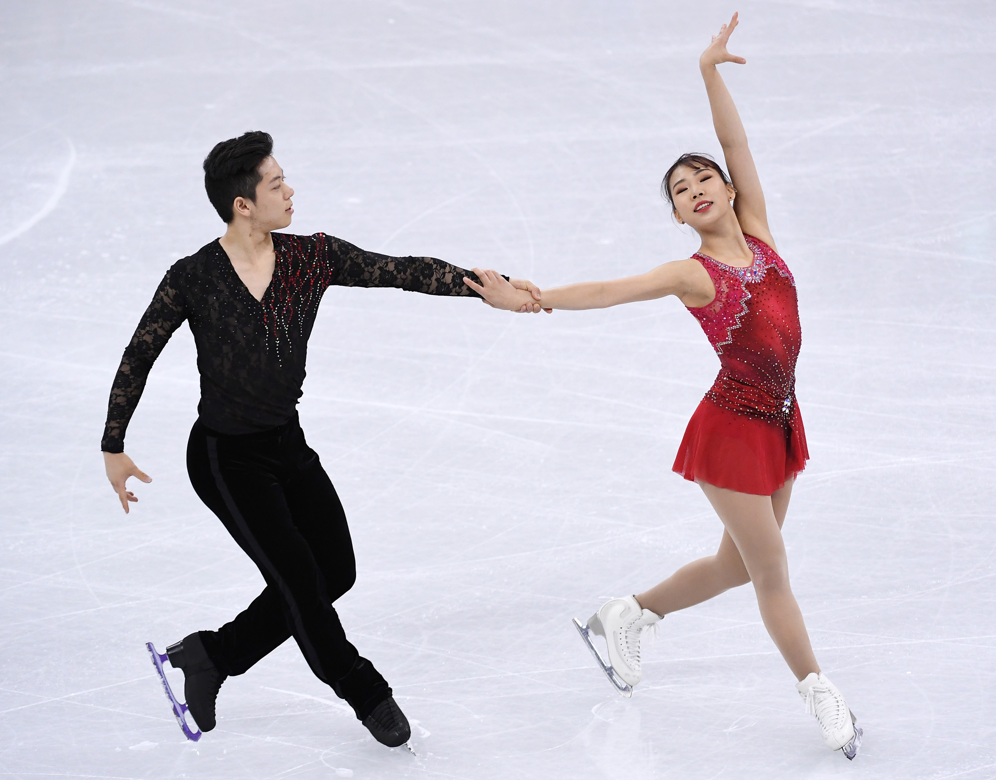 피겨 페어 감강찬-김규은이 9일 오전 강원도 강릉아이스아레나에서 진행된 '2018 평창동계올림픽' 피겨 스케이팅 팀이벤트 페어 쇼트 프로그램에 출전해 연기를 펼치고 있다.