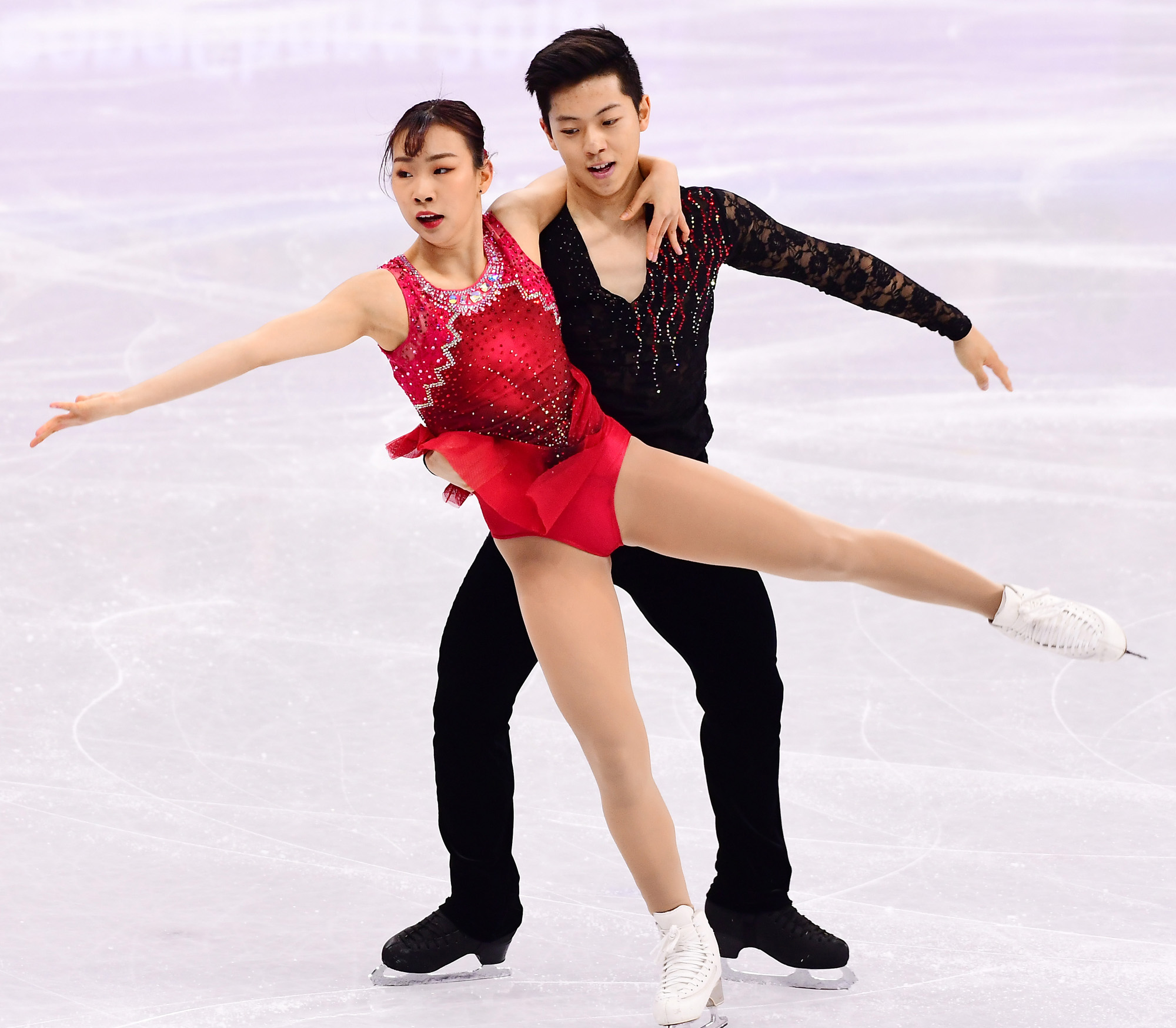 9일 오전 강원도 강릉 아이스 아레나에서 열린 '2018 평창 동계올림픽' 피겨 팀 이벤트 페어 스케이팅 쇼트 프로그램에 출전한 대한민국 김규은과 감강찬이 멋진 연기를 선보이고 있다.